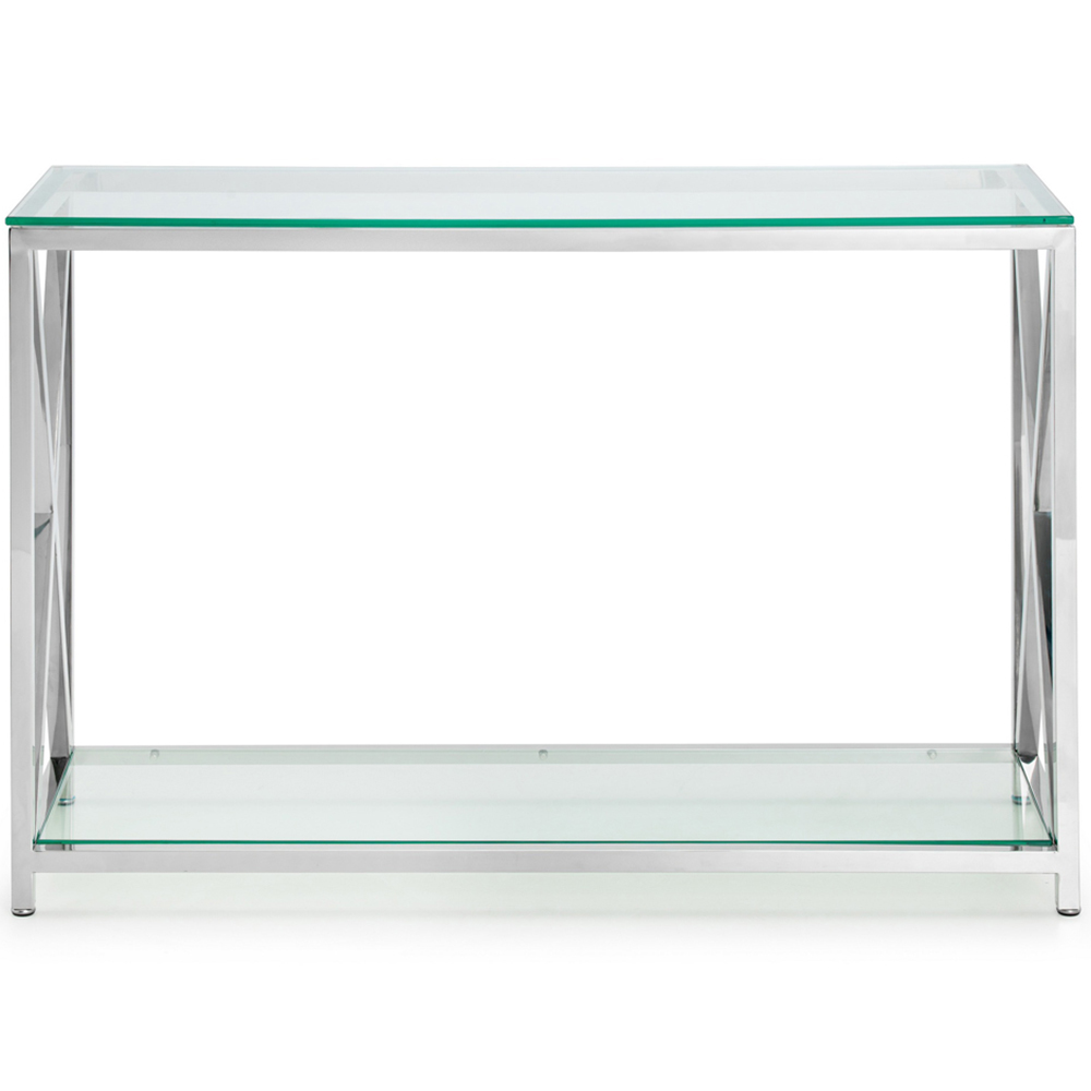 The lavish Miami Console Table from Julian Bowen is perfect to add a touch of class and luxury to any home. Taking inspiration from the Art Deco period, the table features a striking cross-frame design in a classic silver colour. Crafted from a high-quality stainless steel frame and tempered glass, this table provides a shelf underneath for additional storage.