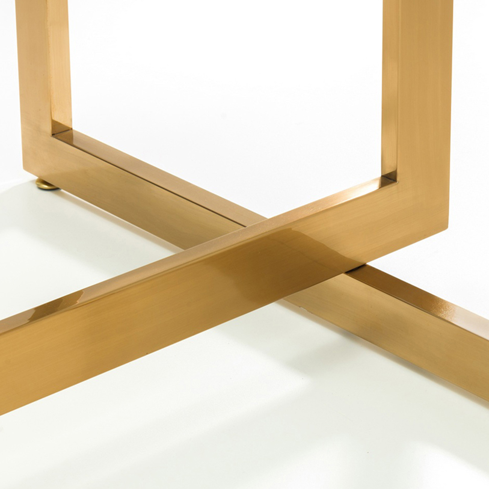 Infuse glamour into your dining space with the Julian Bowen Minori Vittoria 6 Seater Dining Set Blue. Exuding pure elegance and sophistication, the dining table is designed with a sleek glass top paired with stunning gold geometric legs to spark personality into your space. The table is complemented by eye-catching blue chairs adorned with a timeless gold base to create a focal point in your dining that leaves all your guests in awe.