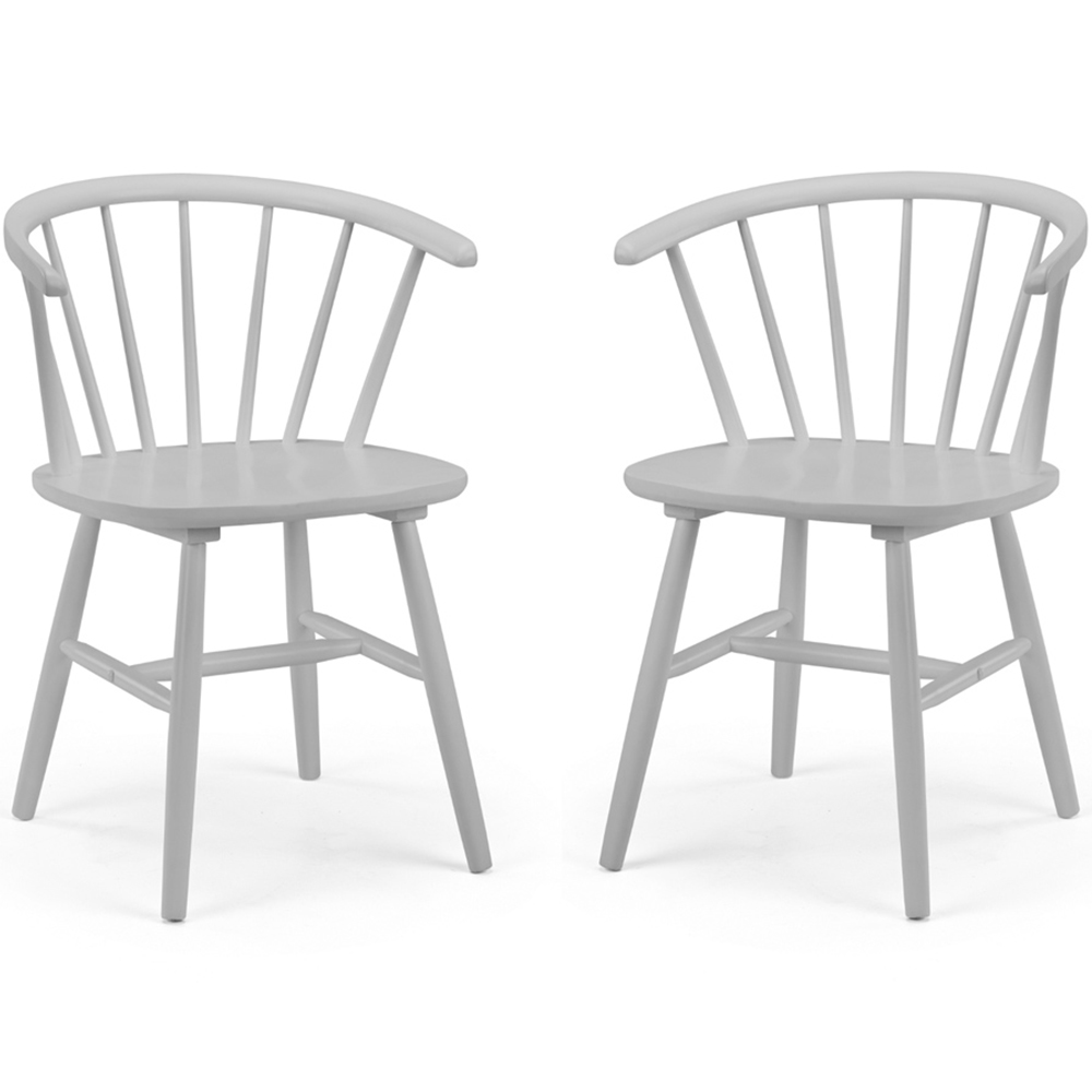 Upgrade your dining space with the Julian Bowen Modena Set of 2 Grey Dining Chair. Offering graceful curves with a Scadi-inspired design, the set showcases a beautiful distinctive spindle back with stylish tapered legs that exude elegance. It provides the perfect classic look to any dining or kitchen room. With a luxurious feel, stunning design, and exceptional durability, the set will elevate your dining experience for years to come.