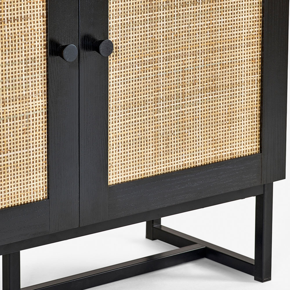Arrange your favourite books and memories in style with the Julian Bowen Padstow 2-Door Black Tall Bookcase. Fusing modern construction with retro design elements, this unit will exquisitely complement any styled home. The natural rattan fronts and industrial-style base collaborate perfectly to leave a warm yet chic aesthetic in your home. Also, the bookcase comes with two doors and three shelves to neatly organise your items.