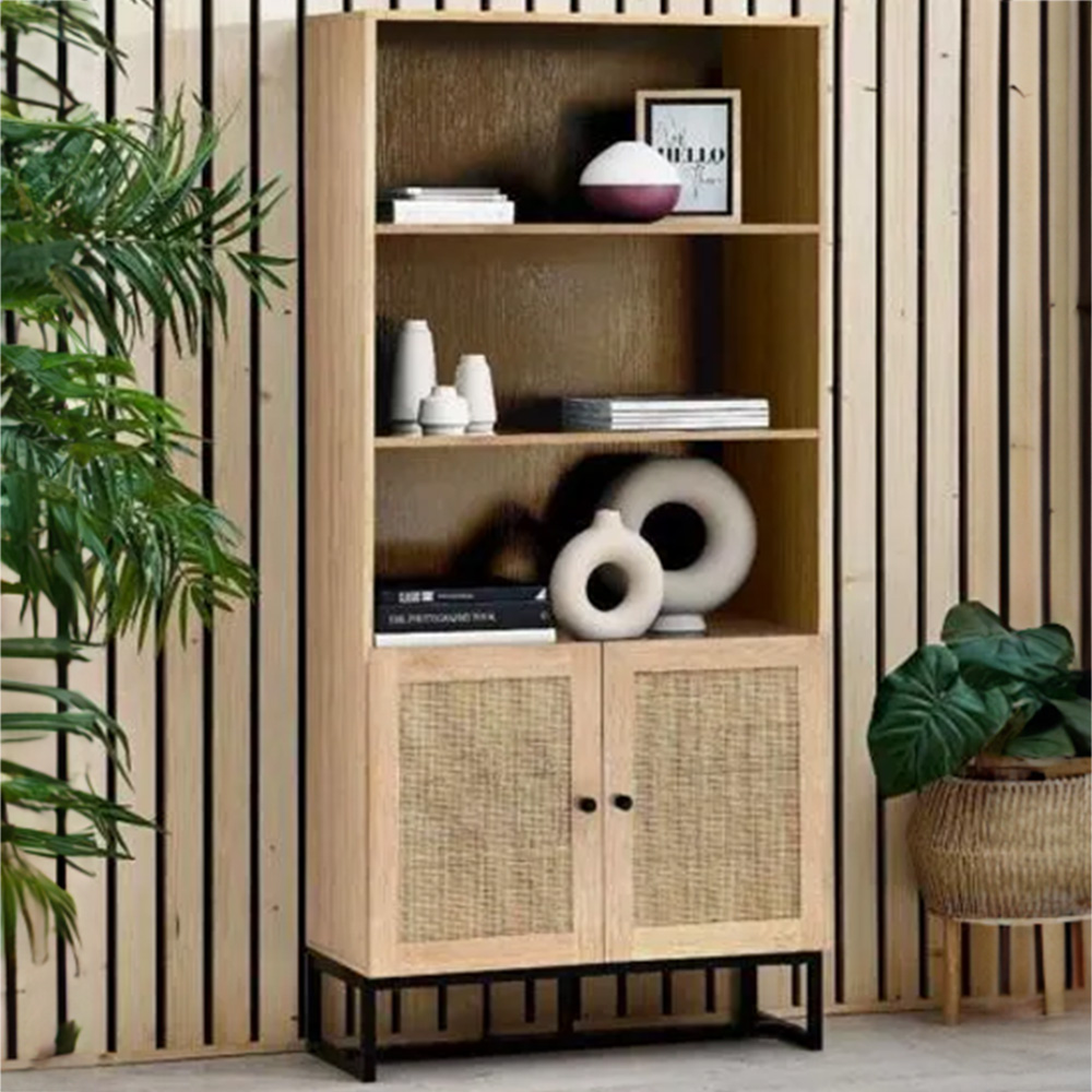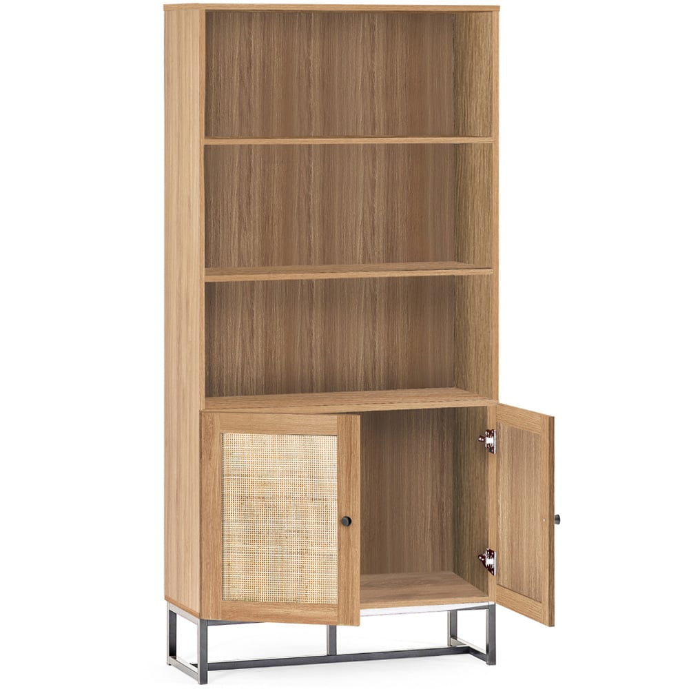 Arrange your favourite books and memories in style with the Julian Bowen Padstow 2-Door Oak Tall Bookcase. Fusing modern construction with retro design elements, this unit will exquisitely complement any styled home. The natural rattan fronts and industrial-style base collaborate perfectly to leave a warm yet chic aesthetic in your home. Also, the bookcase comes with two doors and three shelves to neatly organise your items.