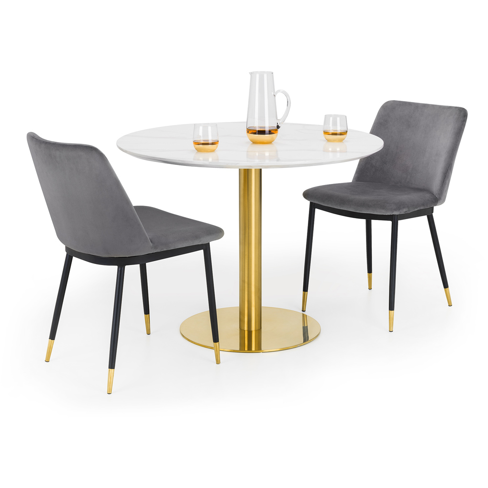 Elevate your decor with this Julian Bowen Palermo 4-Seater Round Pedestal Table. This table is a contemporary, modern, and sleek piece which will complete your dining experience. With an easy-to-wipe, crisp marble top and sturdy gold base, it oozes sophistication whilst being functional and classic. So, whether you’re having drinks with a friend, or a relaxed lunch with your loved ones, this table is a beautiful addition to any home.
