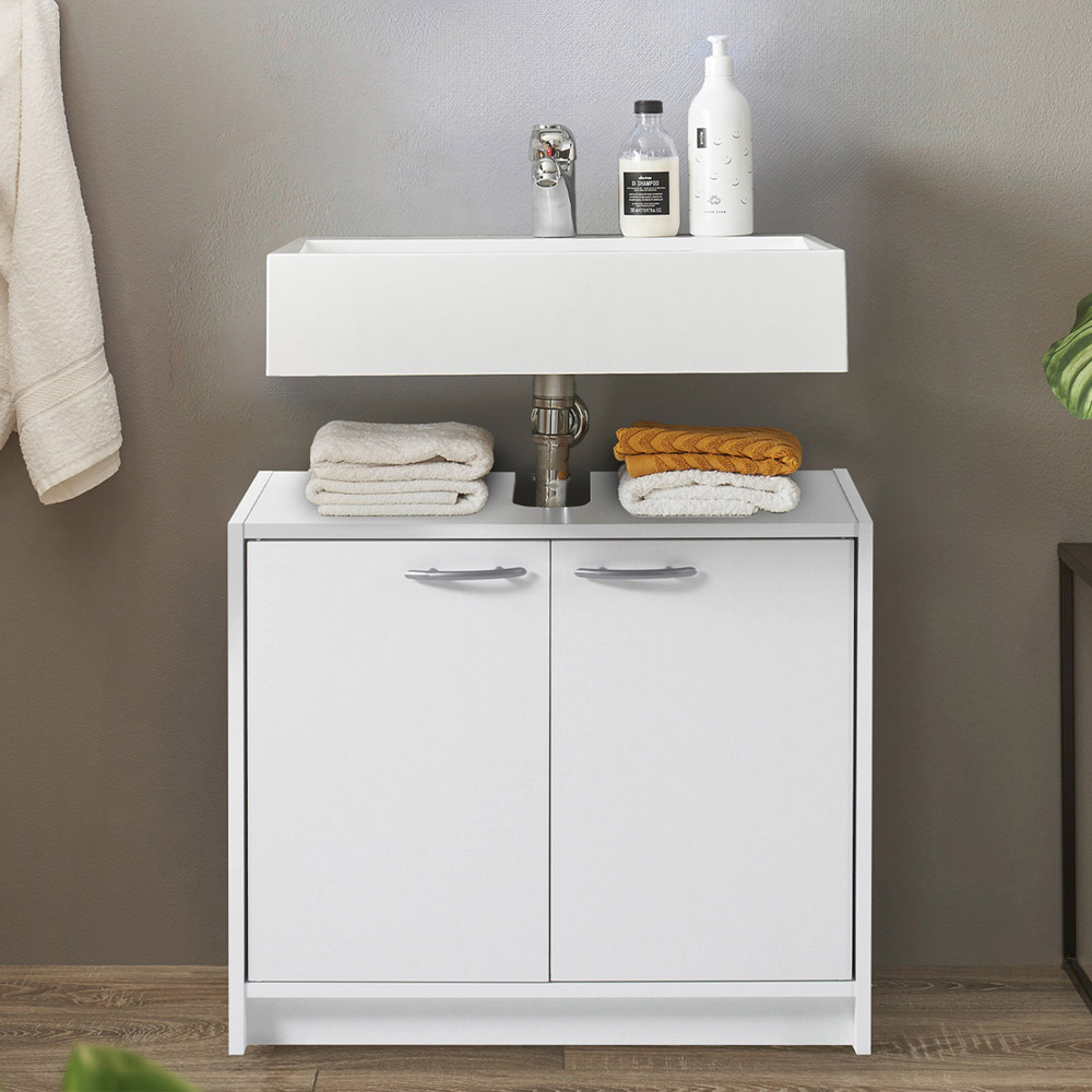 Discover the perfect blend of style and functionality with the Smash Under Sink Cabinet. Finished in a sleek white, this cabinet features two spacious cupboards, each equipped with generous shelves to keep your bathroom essentials organised and easily accessible. The elegant silver circular-shaped handles add a modern touch, elevating your space while ensuring everything is tucked away neatly.