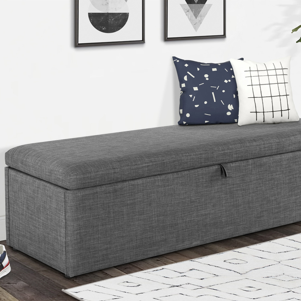 Uplift your bedroom decor with this stylish Sorrento Blanket Box by Julian Bowen. This blanket box is upholstered in a sophisticated slate grey linen fabric and provides a substantial amount of storage for blankets and linen. Its stylish simplicity is subtly accented with discreet diamond button detailing on its top surface. This blanket box can enhance your interior.