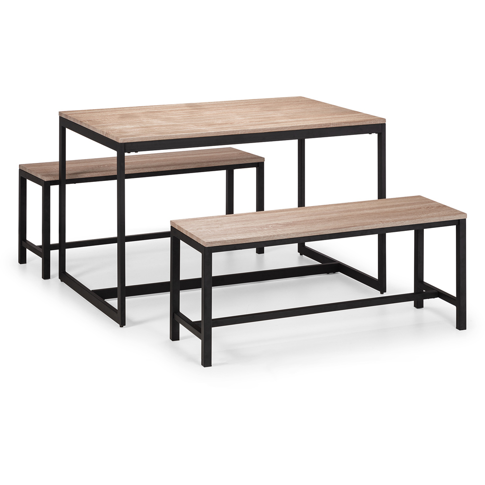 Create a lovely dining space with this cool, modern Tribeca 2 Seater Dining Bench from Julian Bowen - designed to add a contemporary touch to any dining space. Boasting a strong and durable construction, its simple clean lines, delineated by a subtle, black-coated metal frame are complemented perfectly by a warm, Sonoma oak foil, to create a very stylish and sleek product. Simple yet practical, it will make a fine addition to your decor.