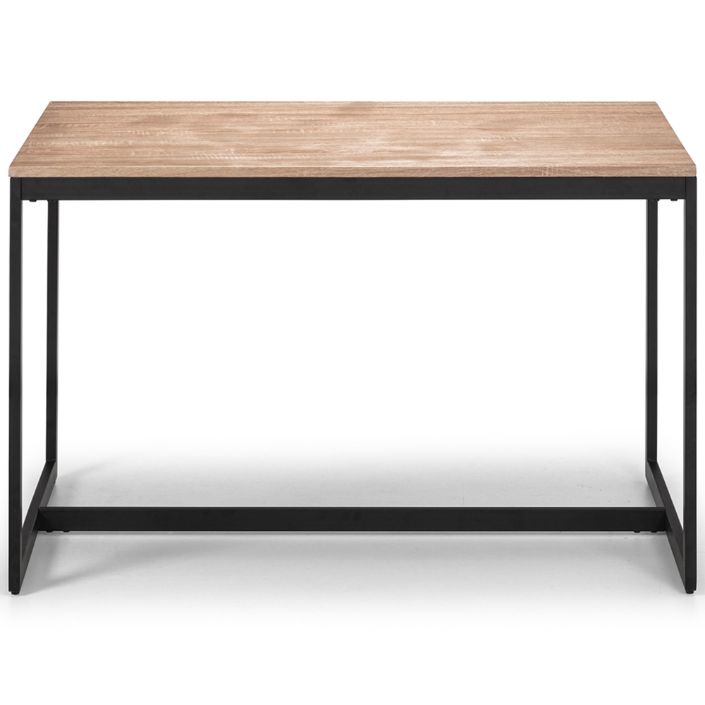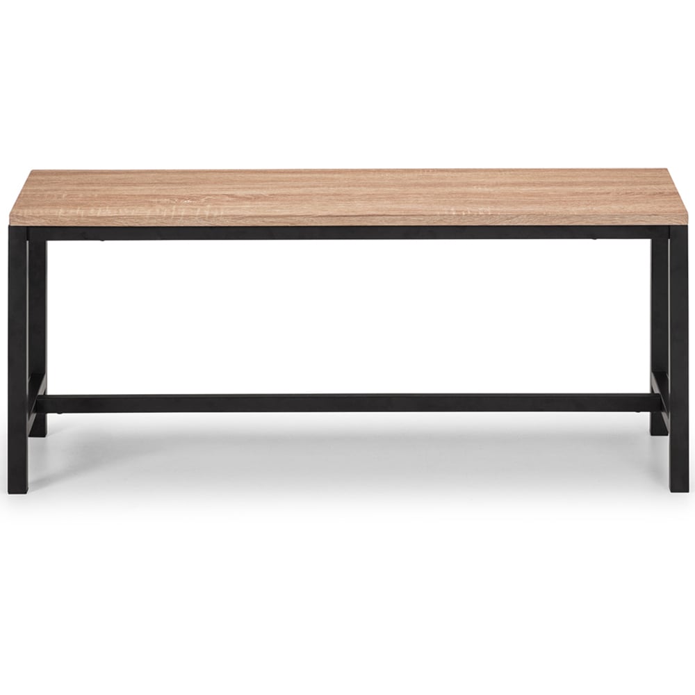 Bring style and sophistication to your dining space with the Julian Bowen Tribeca 4 Seater Dining Set Oak. It is a cool, modern dining table designed to add a contemporary touch to any dining space. It has simple clean lines, delineated by a subtle, black-coated metal frame that is complemented perfectly by a warm, Sonoma oak foil, to create a very stylish and sleek product. It creates a modern atmosphere within your home and is paired with two beautiful Oak benches.