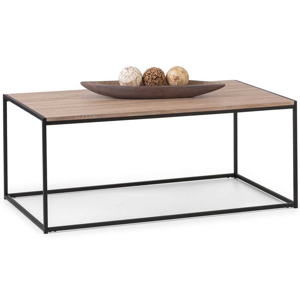 Make a charming addition to your decor with this cool, modern Tribeca Coffee Table from Julian Bowen - designed to add a contemporary touch to any home or workplace. Beautifully proportioned, its simple clean lines, delineated by a subtle, black coated metal frame are complemented perfectly by a warm, Sonoma oak foil, to create a very stylish and sleek design. Simple yet practical, it will make a fine addition to your decor.