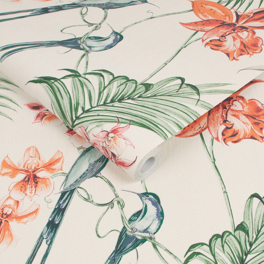 Adorn your home walls with the Julien MacDonald Utopia Pearl Wallpaper. This wallpaper allows you to create a beautiful and bold tropical paradise in your home. It features florals and birds of paradise combined with its trail design. The pattern beautifully co-ordinates with Disco Glitter plain wallpaper. The wallpaper covers the minor imperfections of your wall, giving it a polished new look that attracts the attention of your guests.