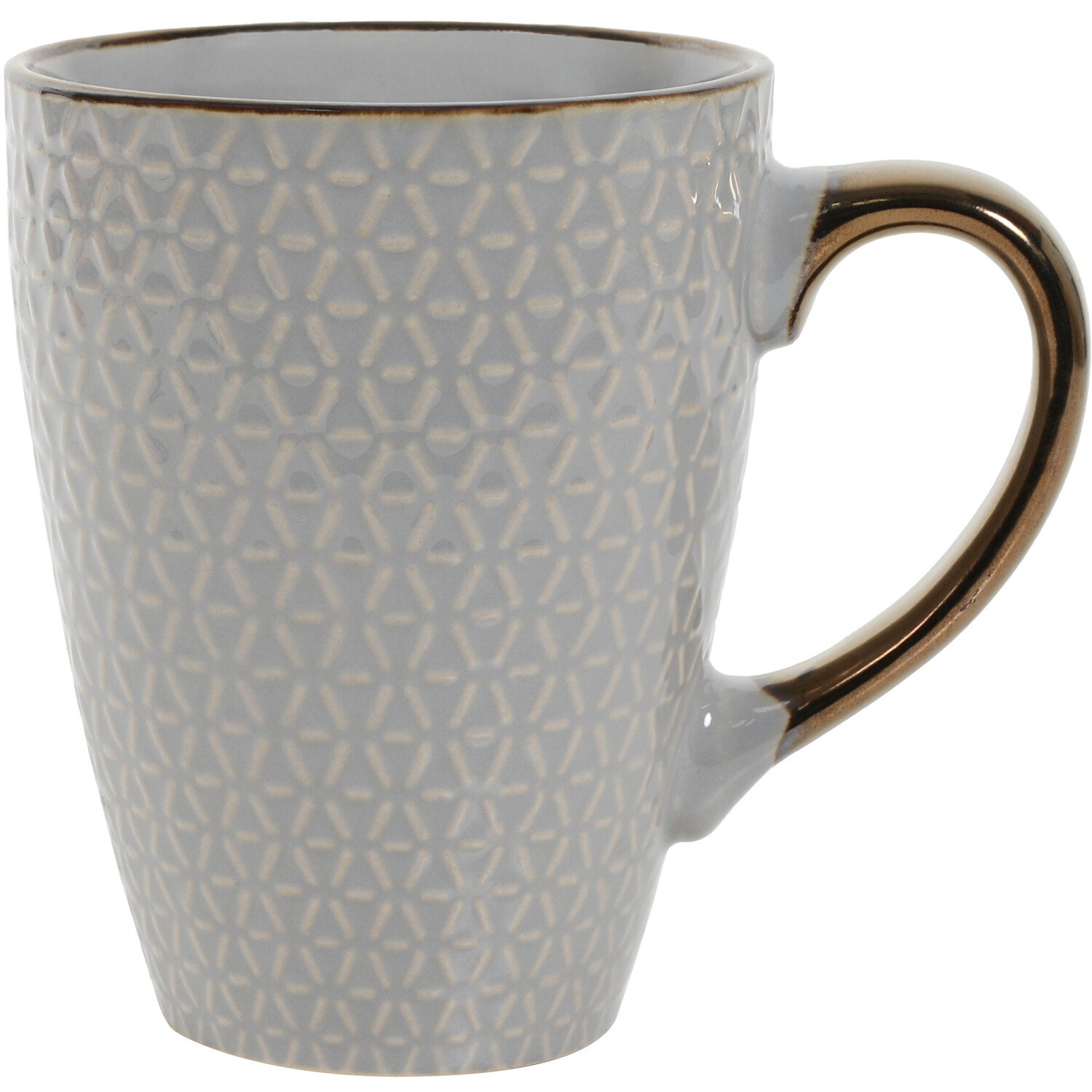 Available in two beautiful, muted colours to suit any space, the Jumbo Embossed Metallic Rim Mug will be a welcome addition to your kitchen cupboard. The mug has a beautiful honeycomb-inspired embossing and is accented with golden elements along the rim and the handle for a sophisticated feel. Ideal for all your favourite hot drinks, the mug is dishwasher-safe for your convenience.