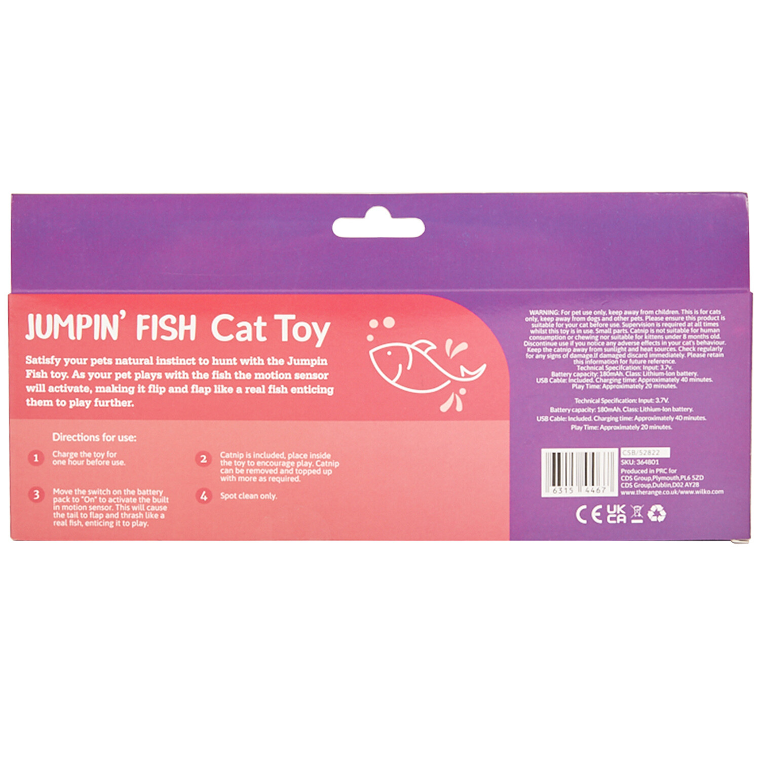 Cater to your cat's natural instinct to hunt with this Clever Paws Jumping Fish Cat Toy. Designed with a motion sensor, the toy flips and flaps like a real fish enticing them to play further. It comes bag of 4g cat nip for added stimulation and a 30cm long white USB cable to charge the safety-tested battery. Safe and convenient to use, it'll keep your pet engaged for hours.