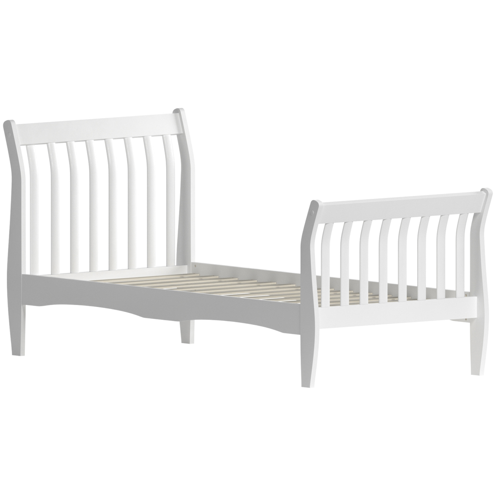 The Junior Vida Orion Single Sleigh Bed White is a stunning piece that brings both elegance and functionality to your bedroom. Designed in a 3ft Single size, this bed is ideal for both children and adults, making it a versatile choice for any home. Crafted with a focus on durability and comfort, the Orion Wood Bed features sturdy wooden slats that provide excellent mattress support, ensuring a restful and rejuvenating night's sleep for years to come. The bed's standout feature is its beautifully designed slatted headboard and footboard, reminiscent of a classic sleigh bed. This eye-catching detail adds a touch of sophistication to your bedroom and complements a wide range of decor styles. Not only does the Orion Wood Bed offer exceptional aesthetics, but its robust construction ensures it can withstand the test of time and daily use. You can rest assured that this bed will be a long-lasting and valuable addition to your bedroom. With its sleek and timeless design, the Orion Wood Bed effortlessly blends with various interior themes, making it an excellent investment to elevate your bedroom space and create a serene and stylish retreat for relaxation. Weight Limit: 100kg. Please Note: This item requires self-assembly with easy-to-follow instructions provided. The actual colour of the product may vary slightly as your screen display setting and lighting with your home environment may differ from our own.