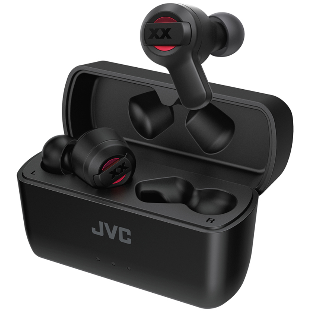 Enjoy uninterrupted music with the JVC XX Black Bluetooth Wireless Earphones. They offer up to seven hours of continuous playback on their own, and the compact charging case provides an additional 17 hours of playback per charge. It ensures you stay immersed in your music sessions or charged while on the go. The earbuds are designed for convenience, allowing you to control your music and other functions using a single button on the left and right earpieces. Once paired with your smartphone, simply take the earphones out of the charging case, and you're ready to enjoy your favourite music. The earphones turn off automatically as you place them back into the charging case, making your music experience smooth and enjoyable from start to finish.