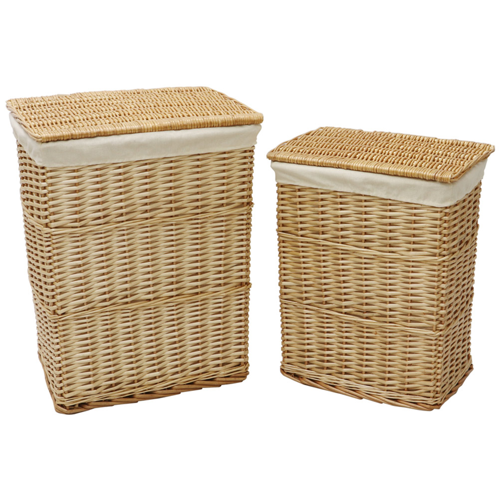 Organise your home in style with this JVL Acacia Honey Rectangular Willow Laundry Baskets. This beautiful set of four willow laundry baskets and bins is perfect for use around the home. Handmade and woven from willow, it gives a traditional feel, while the honey colour makes it suitable for most interior styles. Perfect for the bathroom, laundry and utility room or bedroom – the rectangular lined laundry baskets come in medium and large sizes. Made using renewable material - the artisans use raw fibres to handcraft the woven baskets. Complete with lids to hide away the dirty laundry and any odours – the woven design makes the basket strong and durable. The set includes a large laundry H57x W45 x D32cm with a capacity of 78L approx., and a medium laundry H48 x W38 x D25cm approximately with a capacity of 43L approx. and Bins x2 H25 x W30 x D20cm approx. with capacity 11L approx.