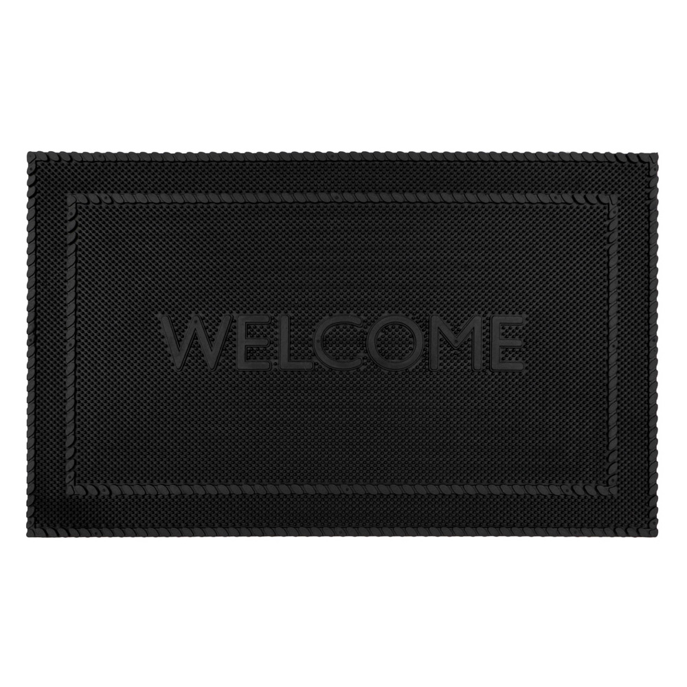 Elevate your doorstep and embrace cleanliness and charm with JVL Alvaro Welcome Scraper Mat. The Flexible rubber studs trap dirt and grit from shoes, while a raised surface removes excess mud, leaving your home clean. The decorative design and welcome message provide a pleasant greeting for your visitors, with the rope-edged detail for the perfect finishing touch. Plus, it's minimal maintenance; shake or hose to clean. The rubber mat is long-lasting and durable, making the doormat suitable for all weather. Suitable for outdoor use. Size: 45 x 75cm approx.