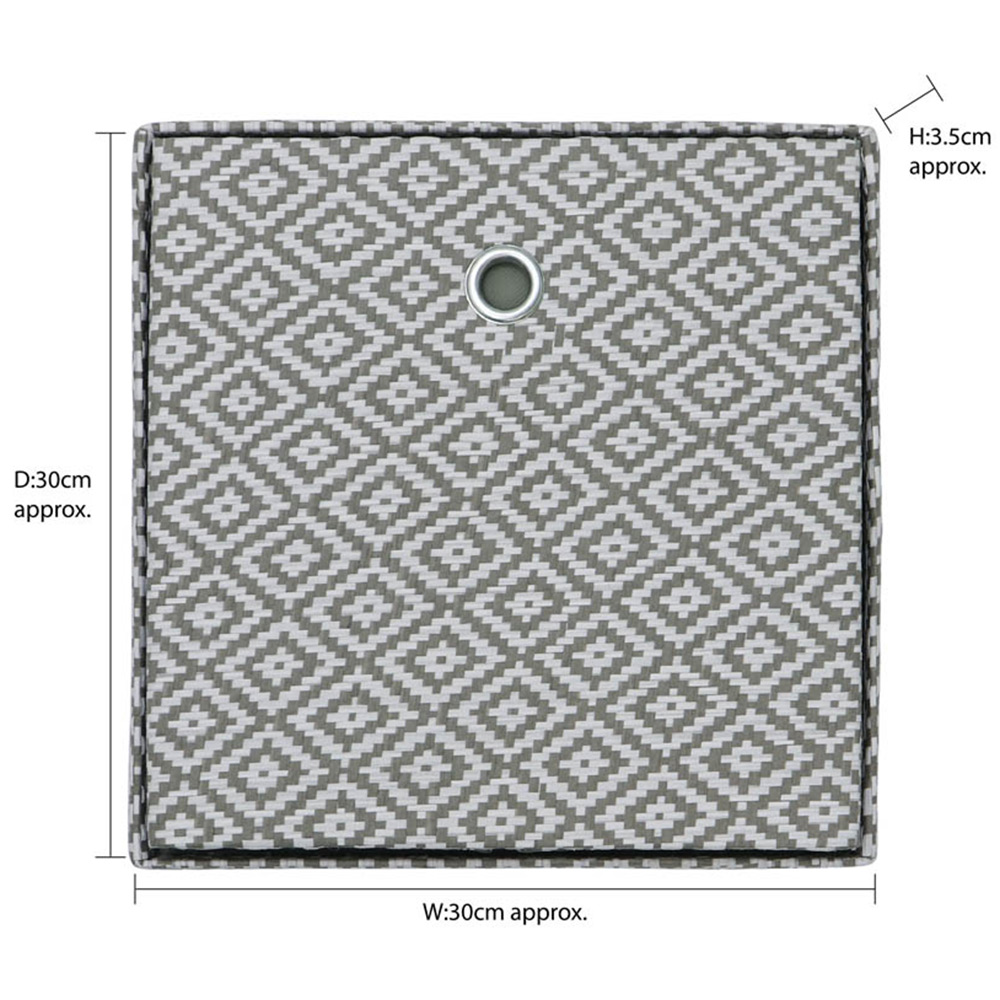 Get organised in style with this JVL Argyle Grey Foldable Paper Storage Box with Lid. Stylish and practical, the storage box features a diamond pattern on a soft grey colour palette to work well with all interiors. Diamonds are a huge trend and can be spotted on celebs as well as in well-known interior ranges and high-street stores. Easy to use, the storage box comes with a lid for safely storing bits and pieces around the home, such as in a bedroom, living room, playroom, utility room, or children’s bedrooms. Space-saving, the box can be easily folded away when not in use. For added convenience, it includes metal handles for easy moving or carrying. Ideal for small garments, jewellery, makeup, toys, towels, linens, baby products, and more. Size: H28 x W30 x D30cm.
