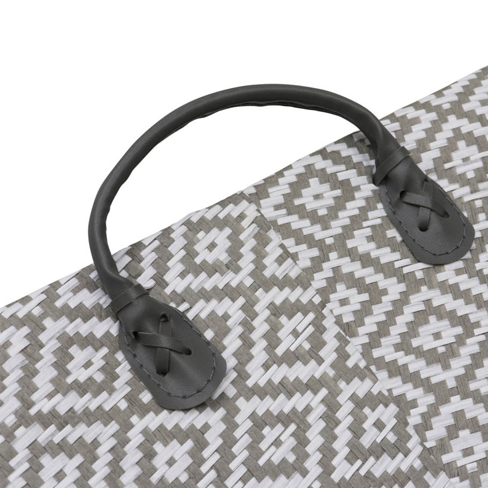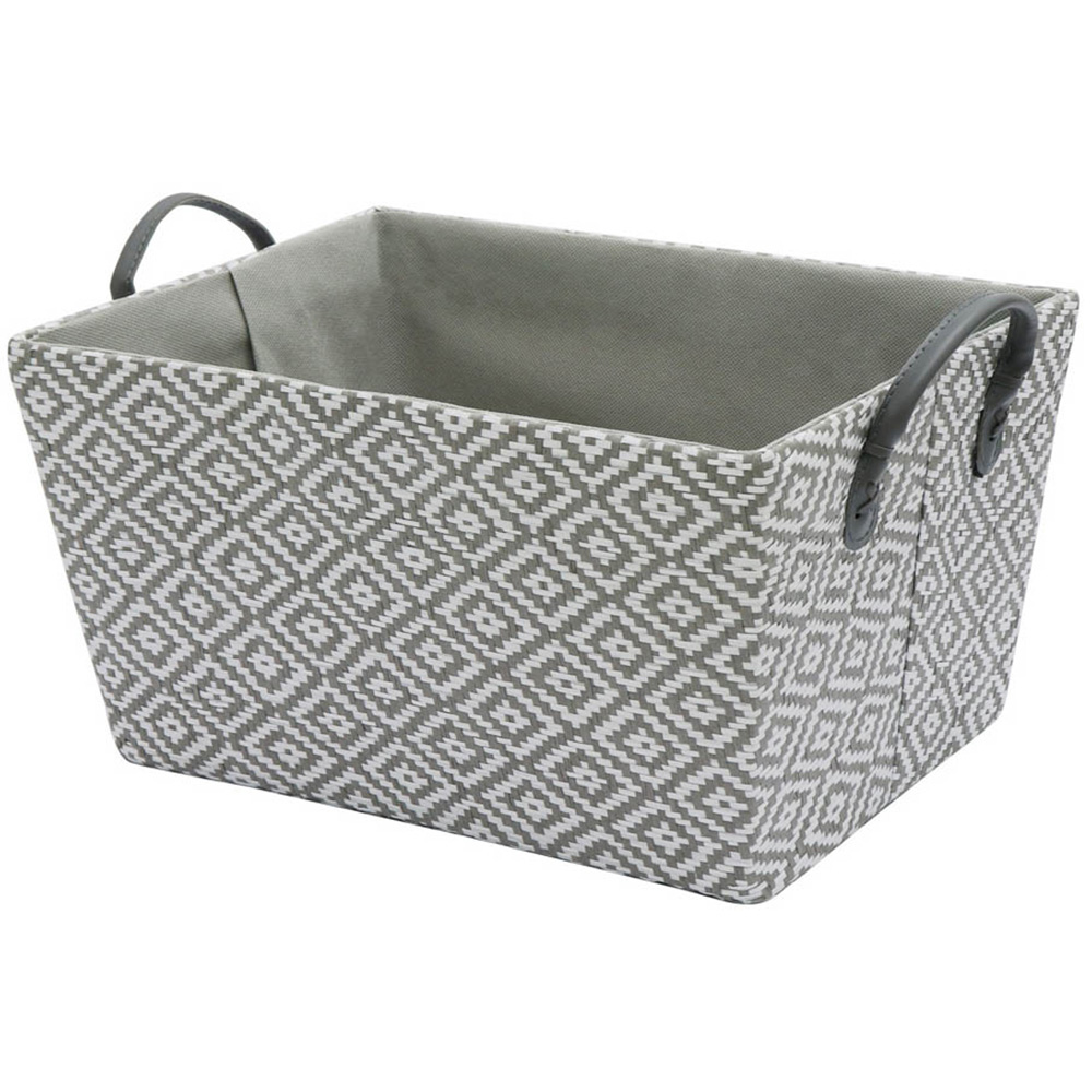 Get organised in style with this JVL Argyle Grey Rectangular Paper Storage Basket with PU Handles. Stylish and practical, the storage basket features a diamond pattern on a soft grey colour palette to work well with all interiors. Diamonds are a huge trend and can be spotted on celebs as well as in well-known interior ranges and high-street stores. Easy to use, it comes in an open design for storing bits and pieces around the home, such as in a bedroom, living room, playroom, utility room, or children’s bedrooms. For added convenience, it includes PU handles for easy moving or carrying. Ideal for small garments, jewellery, makeup, toys, towels, linens, baby products, and more. Size: H20 x W38 x D28cm.