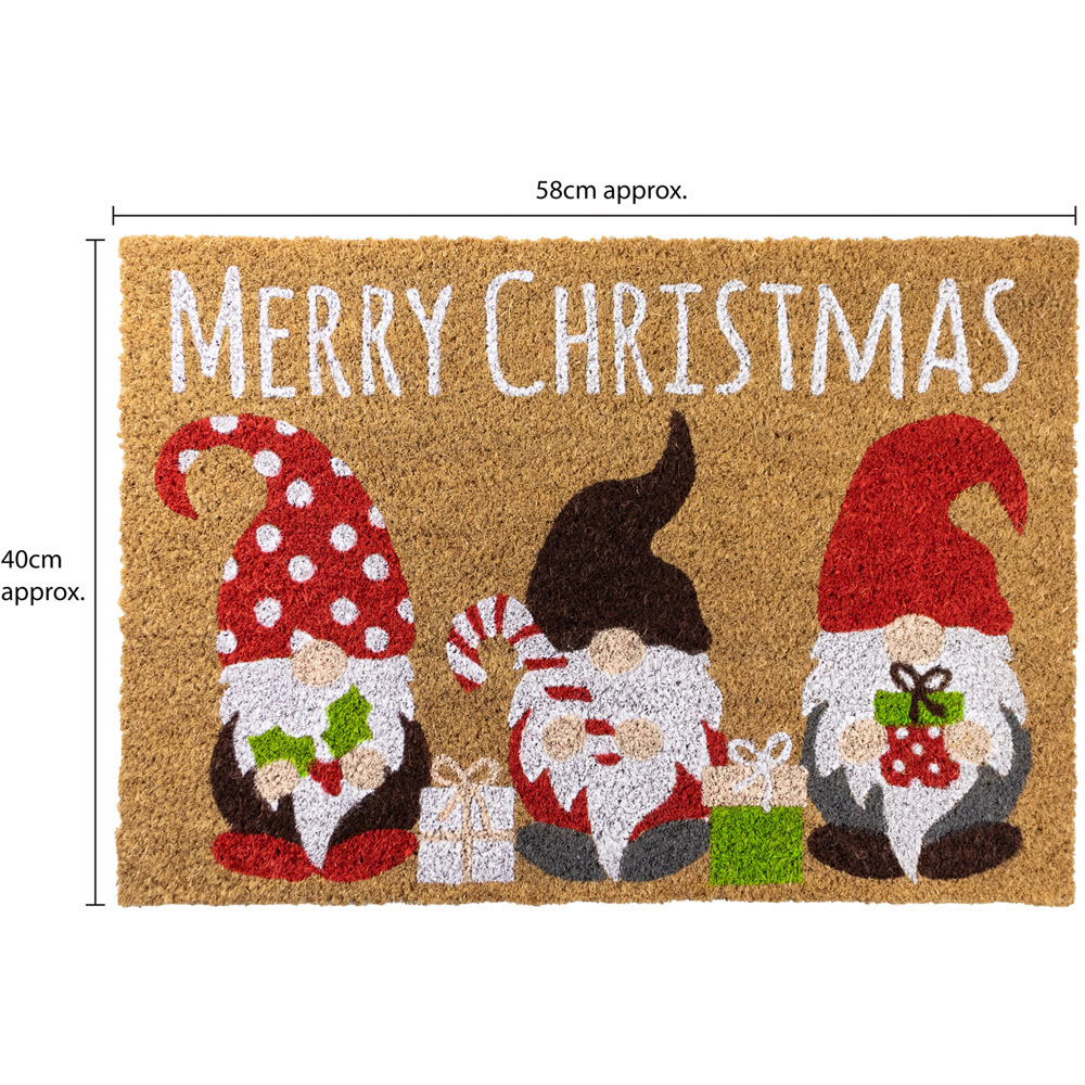 Welcome the spirit of Christmas into your home with the JVL Christmas Gonk Latex Coir Door Mat 40 x 58cm. It brings a cheerful holiday vibe as soon as you step through the door. Made from natural coconut fibre, known as natural coir, this mat is great for any entrance, doorway or porch. The coir provides excellent scraping power for muddy shoes and boots, helping to keep your floors clean and dry. The deep pile of the mat ensures that dirt gets trapped effectively as you wipe your feet. The mat has a rubber latex backing that helps prevent slipping and keeps it flat on the ground without curling. It is suitable for all types of weather, making it ideal for outdoor use, but it can also be used indoors. The coir is mechanically twisted to reduce shedding, so you won’t find bits of it on your floor. One of the best features of this doormat is that it is 100% biodegradable. When you are ready to replace it, the natural coir will break down within a year, and the latex backing will decompose within five years, depending on soil conditions. On top of that, the packaging and ties are also recyclable. With its festive gonk design, this doormat is perfect for greeting friends and family during the festive seasons.