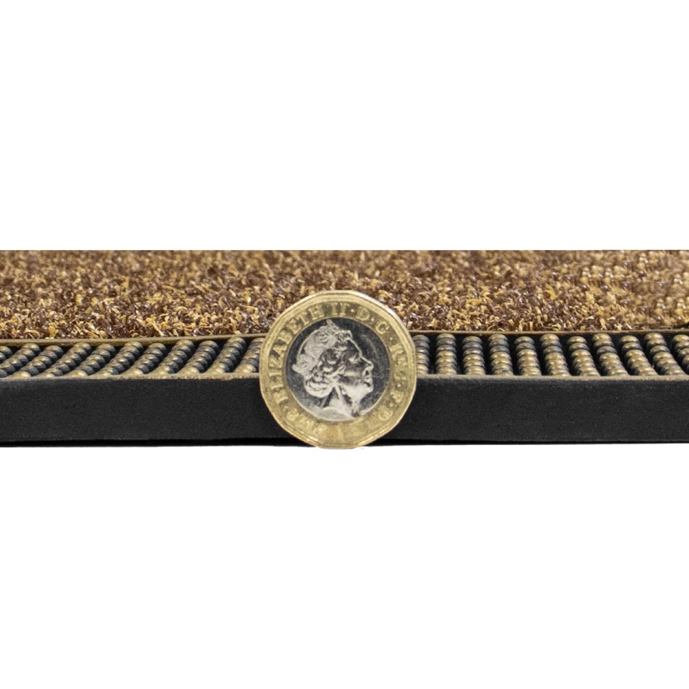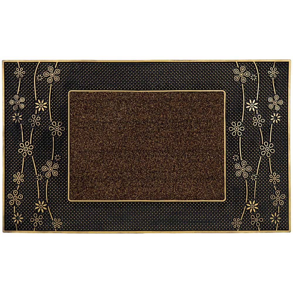 Welcome your guests with style and keep the dirt outside with the JVL Daisy Gold PVC Pin Doormat. This mat offers both practicality and a beautiful design, making it a perfect addition to any entrance. Featuring a unique PVC mould with polypropylene bristles, this doormat is designed to easily scrape shoes and remove dried-in mud and dirt. The flexible rubber studs trap dirt and grit, while the polypropylene surface gets deep into the grooves of shoes and boots, leaving your home clean and tidy. The eye-catching daisy design and metallic silver finish provide a pleasant greeting for your visitors and complement any entrance decor. Made from durable PVC and polypropylene, this mat is built to last, making it ideal for busy homes or offices. Cleaning this doormat is a breeze. Simply shake or hose it off for quick and easy maintenance. Its great quality and suitability for all weathers ensure that it can withstand outdoor use all year round. Size: 45 x 75cm approximately.