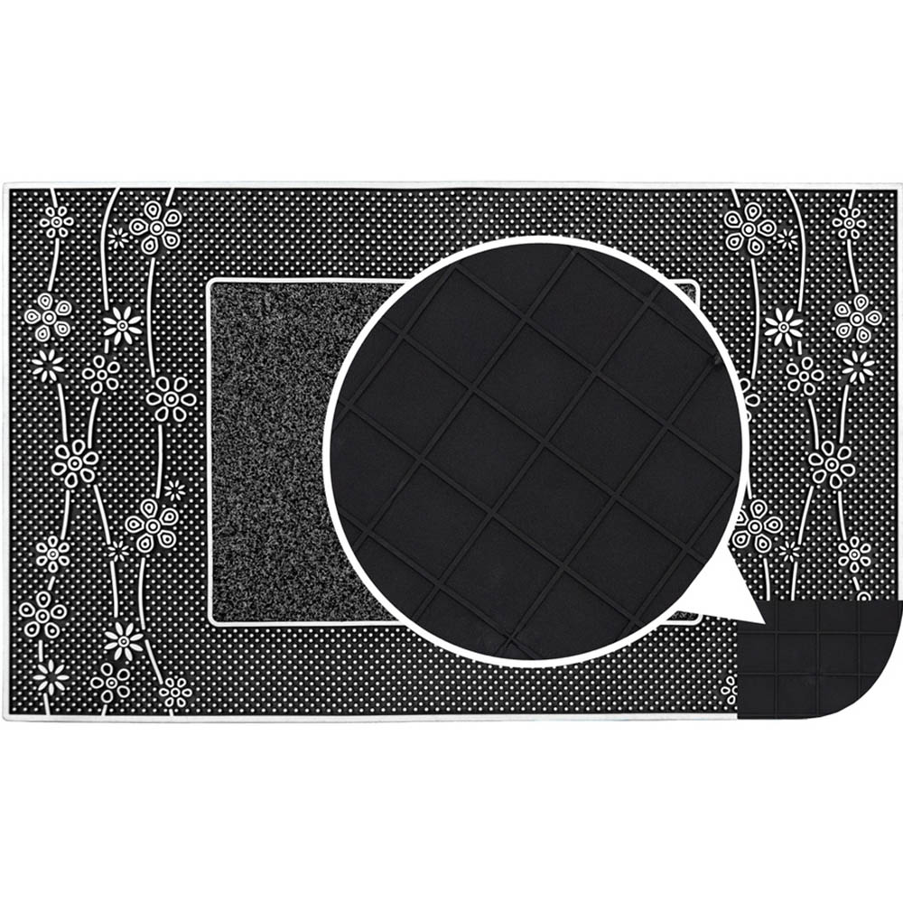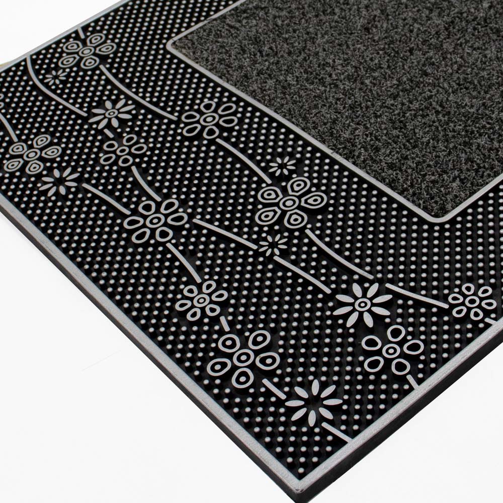 Welcome your guests with style and keep the dirt outside with the JVL Daisy Silver PVC Pin Doormat. This mat offers both practicality and a beautiful design, making it a perfect addition to any entrance. Featuring a unique PVC mould with polypropylene bristles, this doormat is designed to easily scrape shoes and remove dried-in mud and dirt. The flexible rubber studs trap dirt and grit, while the polypropylene surface gets deep into the grooves of shoes and boots, leaving your home clean and tidy. The eye-catching daisy design and metallic silver finish provide a pleasant greeting for your visitors and complement any entrance decor. Made from durable PVC and polypropylene, this mat is built to last, making it ideal for busy homes or offices. Cleaning this doormat is a breeze. Simply shake or hose it off for quick and easy maintenance. Its great quality and suitability for all weathers ensure that it can withstand outdoor use all year round. Size: 45 x 75cm approximately.