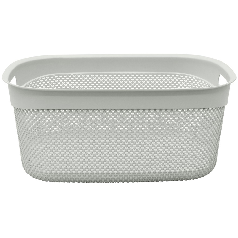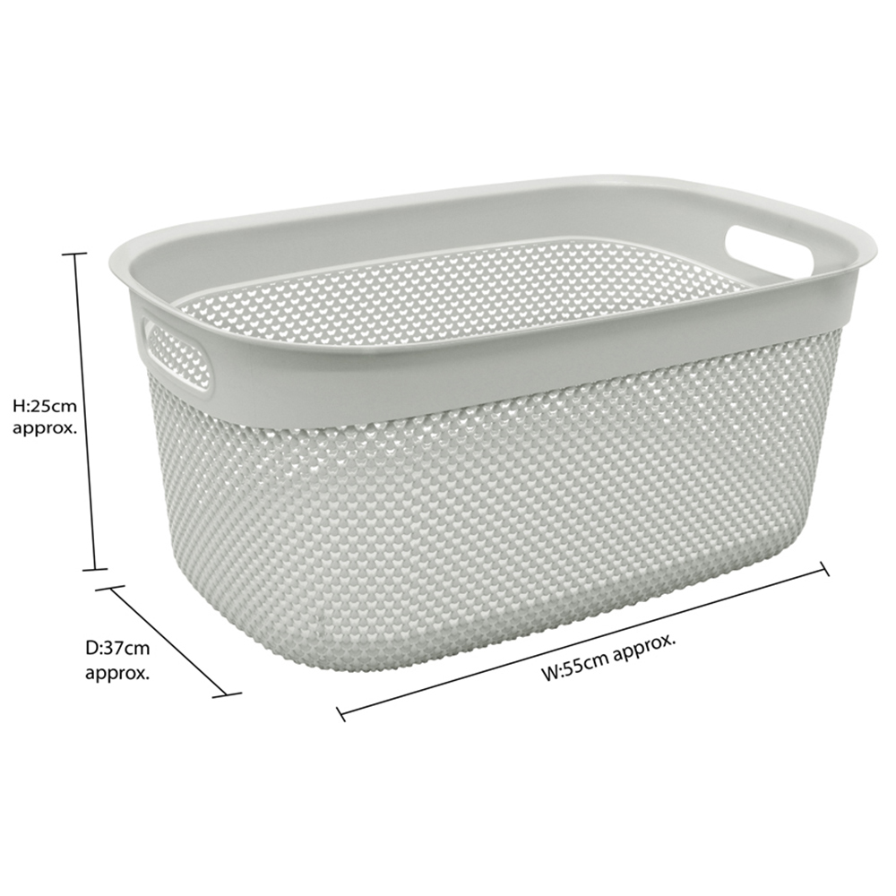 Keep your dirty laundry organised in one place with JVL 33L Ice Grey Droplette Slim Laundry Basket. Stylish yet practical, the Droplette range of products has been designed with an attractive droplet feature in an ice-grey colour to complement any home decor. The laundry baskets are an essential item for the home to help keep your laundry off the floor. The subtle colour palette blends well in the bedroom or the laundry room. The laundry basket has handles, so it's easy to move around the home when transporting your washing or ironing to the laundry room. The laundry basket is made from high-quality, durable material that is resistant to wear and tear. The Droplet design provides good ventilation, allowing air to circulate and preventing musty smells. Easy-clean plastic. Simply dust or wipe clean with a damp cloth. Durable, rust free and BPA-free. Size: H25 x W55 x D37cm approx. Capacity: 33 litres approx.