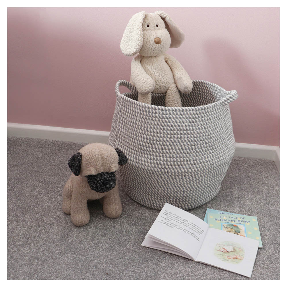 Keep your home tidy and clutter-free with JVL Edison Large Round Belly Cotton Rope Storage. Edison collection is a smart and elegant touch to storage solutions. The basket, crafted from a thick cotton rope in soft grey and white tones, is sturdy and easy to transport around the house while staying gentle for little hands. This large round storage basket to keep your home tidy and clutter-free is designed to complement most interior decor and can be used anywhere around the home. This rope storage basket is so versatile it makes a great storage solution and can be used for a whole host of things. Declutter and use them for small garments, scarves, magazines, baby accessories and more. Organise the home and use it to store clothing in your wardrobe or simply a decorative feature in the home. An attractive open storage basket that you can use for storing bits and pieces around the home, such as in a bedroom, living room, playroom, utility room and children’s bedrooms. The basket features two handles to make transporting around the home a little easier. Size: H34 x Dia38 x Base30cm approx. Capacity: 30L approx.