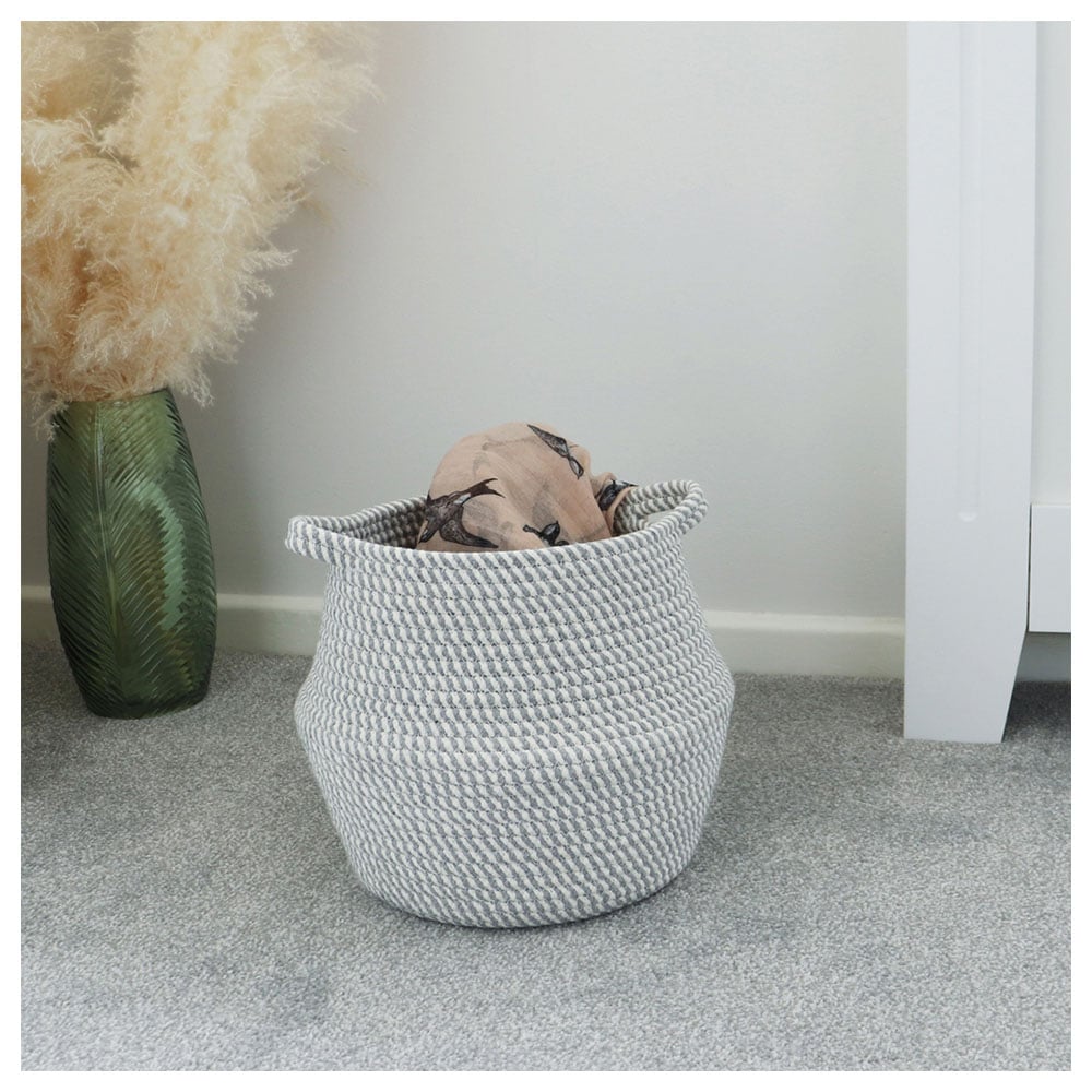 Keep your home tidy and clutter-free with the JVL Edison Medium Round Belly Cotton Rope Storage. Edison collection is a smart and elegant touch to storage solutions. The baskets crafted from a thick cotton rope are sturdy and easy to transport around the house while staying gentle for little hands. This round storage basket to keep your home tidy and clutter-free is designed to complement most interior decor and can be used anywhere around the home. This rope storage basket is so versatile it makes a great storage solution and can be used for a whole host of things. Declutter and use them for small garments, scarves, magazines, baby accessories and more. Organise the home and use it to store clothing in your wardrobe or simply a decorative feature in the home. An attractive open storage basket that you can use for storing bits and pieces around the home, such as in a bedroom, living room, playroom, utility room and children’s bedrooms. The basket features two handles to make transporting around the home a little easier. Size: H28 x W30 x D24cm approx. Capacity: 14L approx.