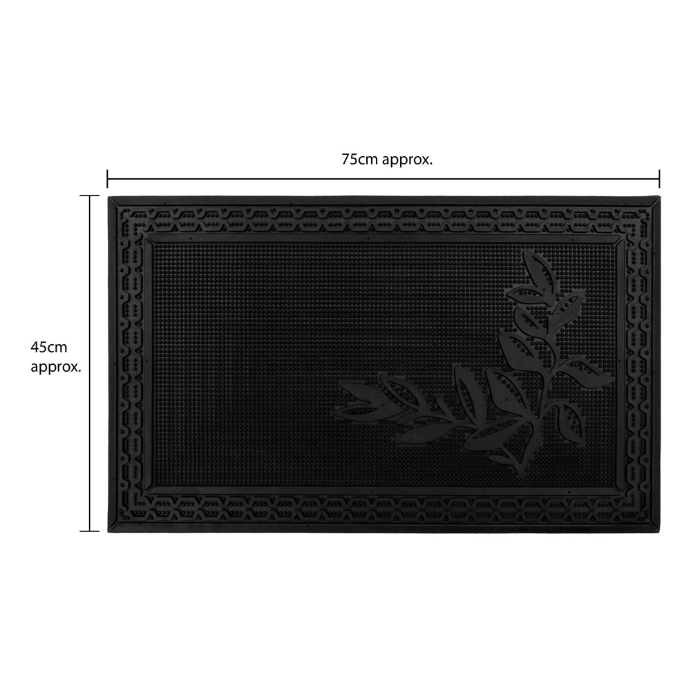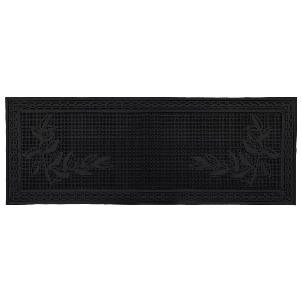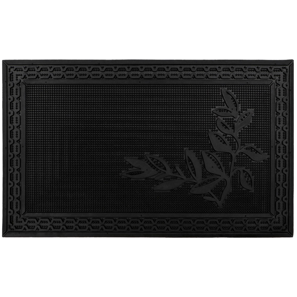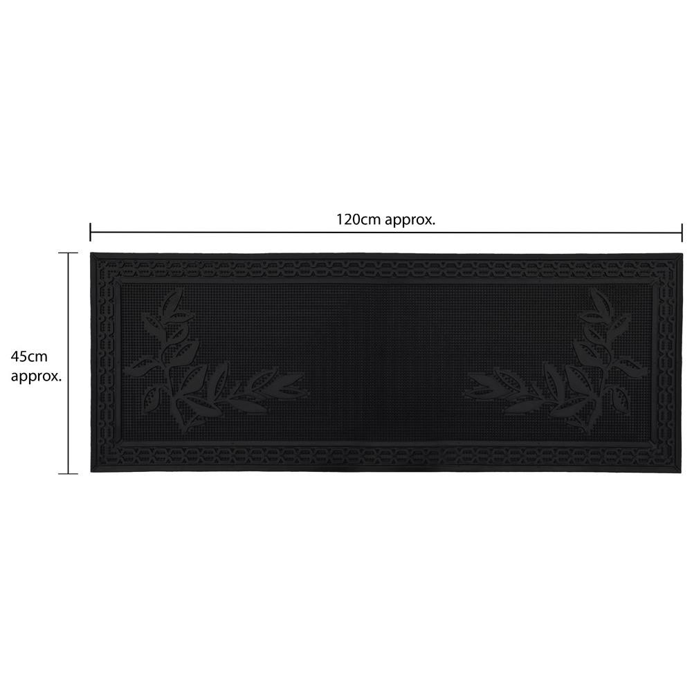 Add a practical touch to your hallway with this Foliage Rubber Scraper Door Mat Runner 40 x 70cm by JVL. This Foliage rubber patio mat or door mat is practical and durable; it features flexible rubber studs that trap dirt and grit from shoes, while the raised surface gets into the sole's grooves, removing excess mud and dirt and leaving your home clean and tidy. The mat is framed with an attractive border for the perfect finishing touch. It also features bevelled edges, which help prevent tripping as the mat lays flat to the floor, making it easy for wheels to glide over, and is also designed to allow water to drain away quickly. The decorative design provides a pleasant greeting for your visitors and has minimal maintenance, shake or hose to clean. This mat is made from 100% rubber, which is long-lasting and durable, making the doormat suitable for outdoor use in all weathers.
