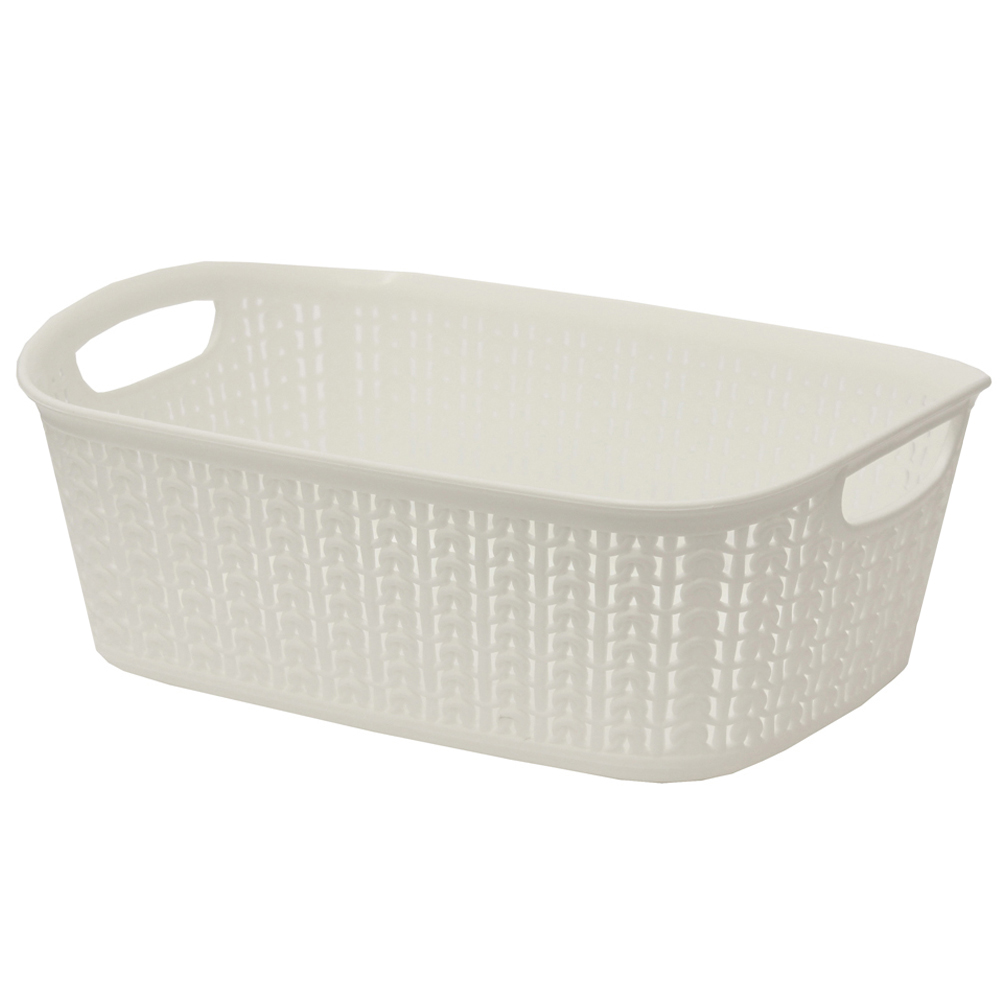Keep your room tidy and clutter-free with JVL Loop 6.6L White Storage Basket. The Loop range of products features a knitted Loop design in the colour ivory white to complement any home decor. The storage baskets are an essential item for the home to help keep you organised and clutter-free. It offers multi-functional storage options so you can store anything and everything, such as toiletries, jewellery, makeup and more. The baskets are easy to clean, and the design means they have good ventilation. The storage basket is made from high-quality, durable material that is resistant to wear and tear. Multi-functional storage means you can use it to store different items, such as nail varnish, toiletries or jewellery, in the office for stationery or perhaps herbs and packets of rice in the kitchen cupboards. Each basket features comfortable and sturdy handles for ease of carrying and moving around. It can be used in the kitchen, bedroom, bathroom, laundry room, nursery and more. Easy-clean plastic - simply dust or wipe clean with a damp cloth. Durable, rust free and BPA-free. Size: H17 x W26 x D20cm approx. Capacity: 6.6L approx.
