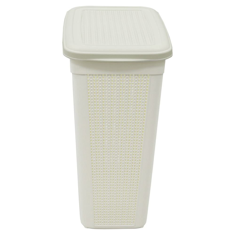 Stylish yet practical, this JVL Loop Laundry Basket has been designed to complement any home decor. Made from durable, rust-free and easy-clean plastic, this laundry basket in white colour has shaped carry handles for a comfortable hold and has a lift-up lid. Open loop design aids ventilation. It sits neatly in your laundry room or bedroom. The open-knit loop design aids ventilation. BPA Free. Products from laundry baskets to smaller storage solutions in the same design to store pegs or laundry products, toiletries in the bathroom, or to keep any room organized and store jewellery, makeup and more are available. The entire range is easy to clean with good ventilation. It features carry handles. This super slim laundry basket is a great product when space is minimal. Capacity: 43L approx.