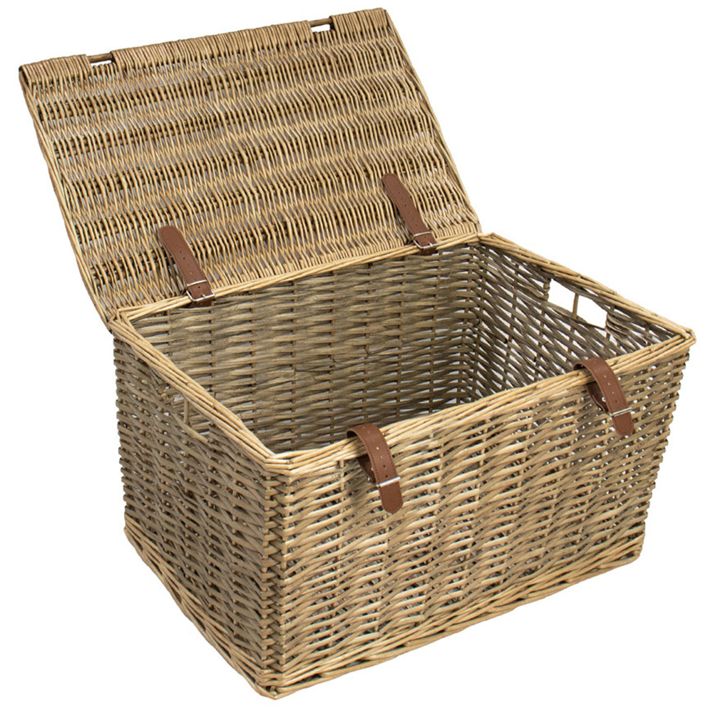 Give your space the touch of nature with the JVL Medium Natural Willow Wicker Storage Hamper Basket. Handmade and woven from willow, this storage hamper offers a traditional feel with its natural willow colour that can easily match any modern space. You can use the rectangular storage hamper to store your things or to style around your home as a feature. With its modern sizes and simple styling, it's the perfect solution for your storage needs and can be used in any room, including the bedroom, living room, laundry or utility room, playroom, and office. The best part is you can tidy things away and close the lid, making your space look neat and organized. Willow is a rapidly renewable material that regrows as quickly as it's used, making it an eco-friendly choice. With its neutral tones and strength, this willow storage hamper is a perfect complement to your home decor.