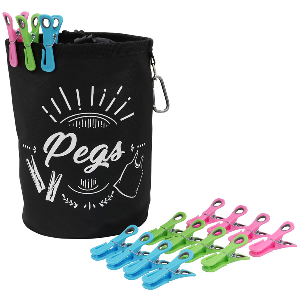 Hang your washed clothes with this Prism Assorted Plastic Clip Pegs with Bag 144 Pack by JVL. These pegs are robust, durable and designed to protect and hold your wet washing in place, even in windy conditions. The pack of 144 comes as a mixed pack of three colours: blue, green and pink. It is completed with a spacious peg bag which can hold up to 300 pegs and comes with 144 pegs included. You can attach the clip/hook to your rotary airer, washing line, indoor airer or trouser belt loop to keep your pegs handy. This durable peg bag even has a closing string fastener to keep your clothes pegs clean and in one place when unused. Also, with its soft cushioned pads, the peg helps minimize any pressure imprints on your clothes. Use the drawstring fastener and toggle to keep your pegs clean and protected. The pegs are also great for indoor and outdoor use as they are weather-resistant.