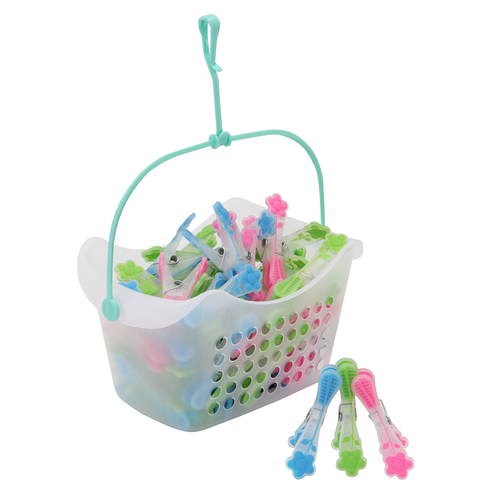 Step into spring and brighten up your washing line with the JVL Prism Soft Touch Flower Pegs and Peg Basket. These strong and durable pegs are designed to securely hold your wet washing in place, even in windy conditions. With a pack of 72 in a mixed variety of blue, green, and pink, you'll never run out of pegs again. Plus, the pegs come complete with a handy peg basket that conveniently attaches to your washing line. The soft cushioned pads provide extra protection for your clothes and prevent pressure imprints. Whether you're drying your clothes indoors or outdoors, the weather-resistant pegs are perfect for any environment. Plus, the built-in holes in the basket allow for excess water to drain out, making them ideal for overnight use.