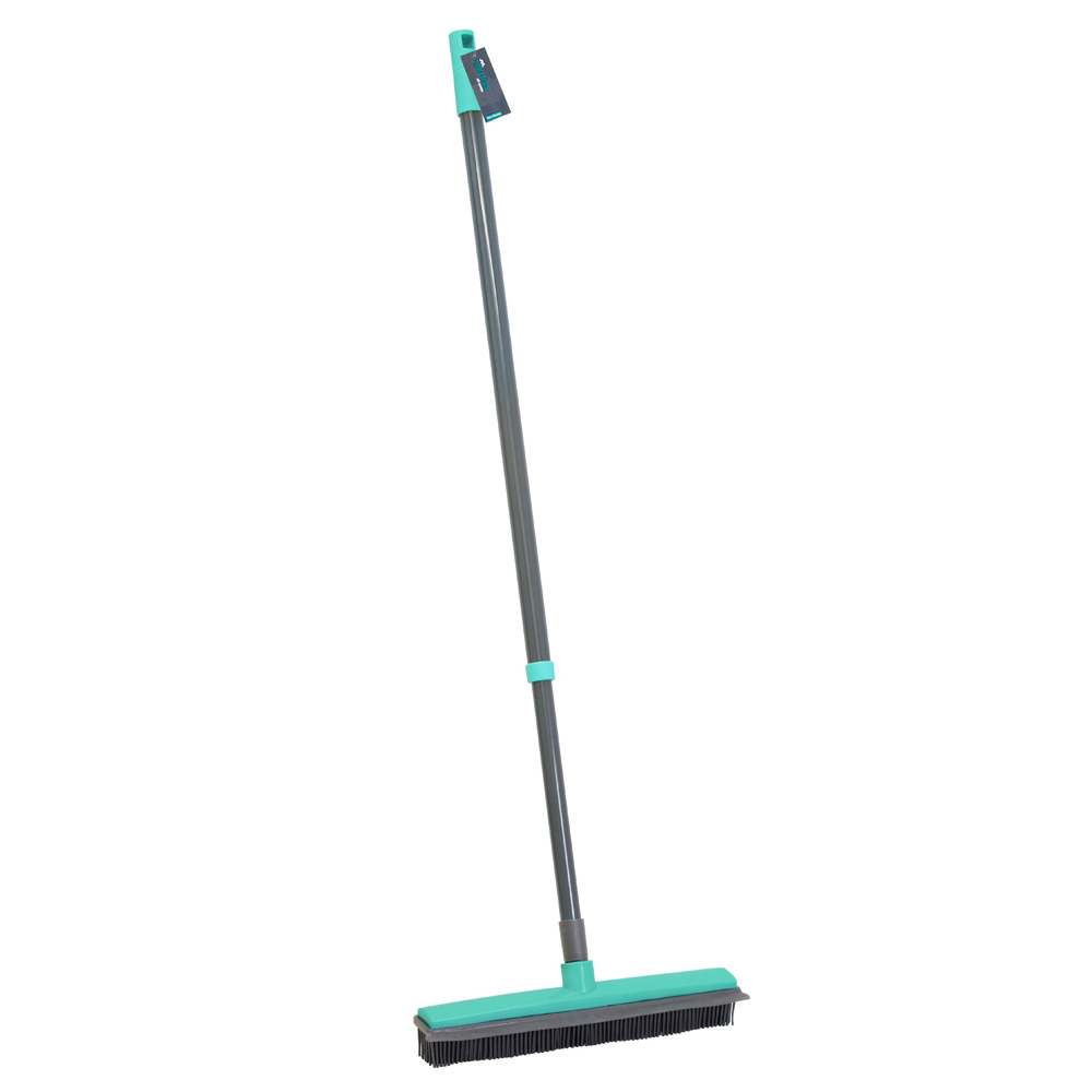 Sweeping and chasing the particles around the floor gets frustrating sometimes. Here is a broom that will help you breeze through these tasks. Use JVL Rubber Broom for fine hairs, animal hairs and dust on hard floors and watch this chore become a doddle. The rubber bristles grip the hair and dust without it flying away. Turn the head and use the squeegee to help remove any stubborn marks from the floor. Perfect for tiles, lino and wood flooring types. Ideal if you own hairdressers, vets or pet grooming shops. It has an extendable handle for ease of use. Perfect for tiles, lino and wood flooring types. It has a hole in the handle for storage when not in use. Handle height: 74-126cm approx. Head: W31 x D7cm approx. Weight: 0.6kg approx.