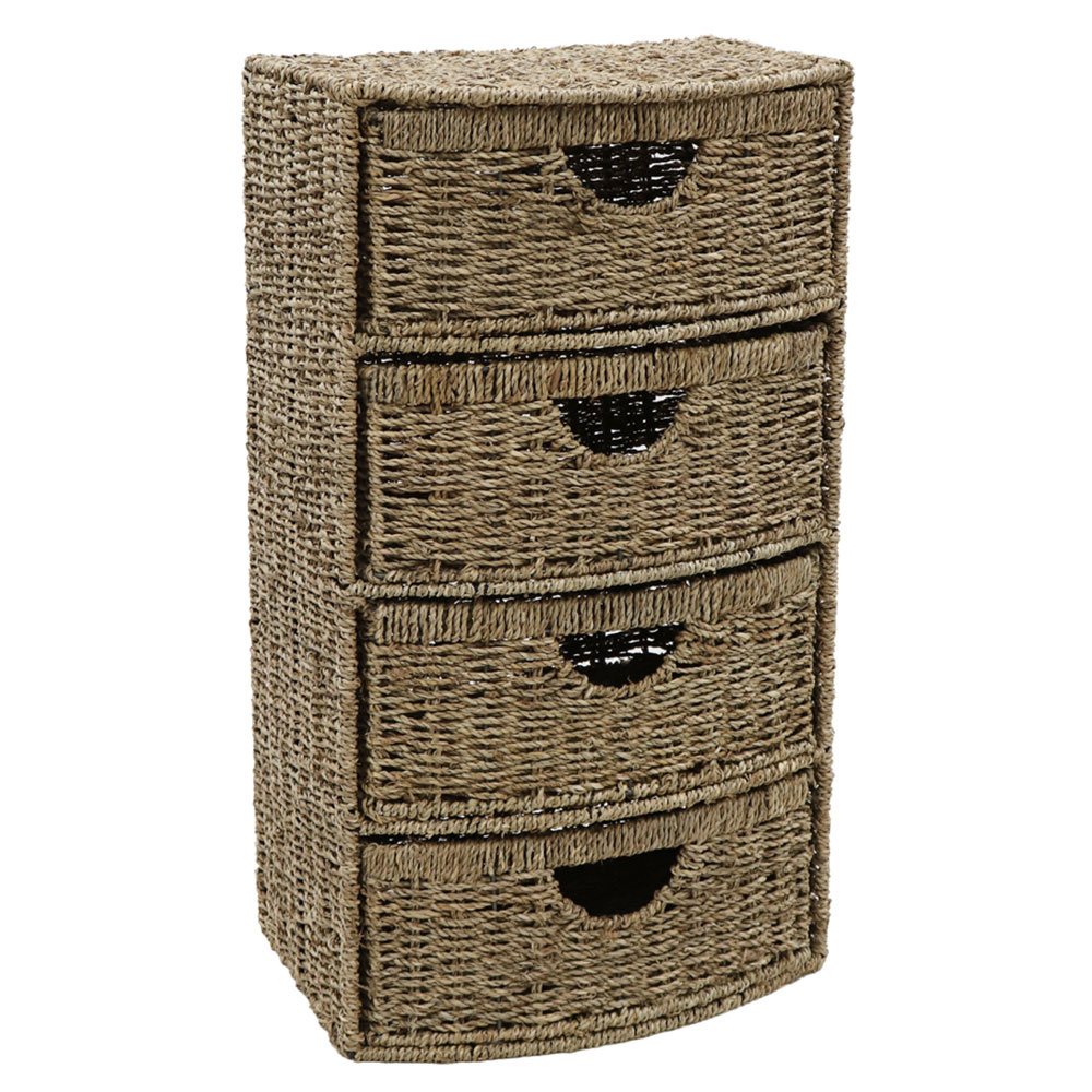 Make organising things a stylish affair with JVL Seagrass Four Drawer Bow Tower Unit. This strong and durable storage with four drawers will help clear clutter and organise the home with style. A must-have accessory for every household, this seagrass storage tower is woven onto a metal frame. A great addition to any living space, bathroom, bedroom or office space, it is suitable for storing toiletries, make-up, jewellery and more. Seagrass is a renewable source, a fast-growing plant that grows in the sea. This renewable material comes from living sources and regrows as quickly as they’re used. Seagrass is hand-woven by highly skilled artisans. Its neutral tones and strength make it ideal for basket-weaving and complement the home decor. Size: H69 x W38 x D28cm approx. Please note: shades may also vary from the images shown as our products are made from natural materials.