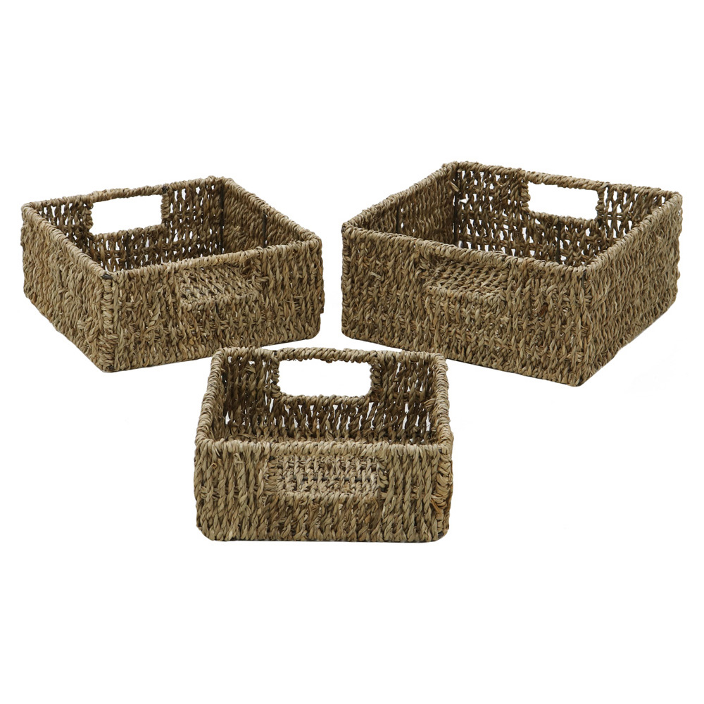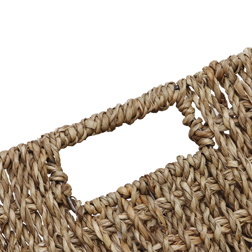 A must-have accessory for every household, JVL Seagrass Storage Baskets are woven onto a metal frame and come in three versatile sizes. Seagrass is a renewable source, a fast-growing plant that grows in the sea. Renewable materials come from living sources and regrow as quickly as they’re used. Seagrass is hand-woven by highly skilled artisans. Its neutral tones and strength make it ideal for basket-weaving and complement the home décor. Display them as a feature or use them as storage options. The storage basket helps clear clutter and organise the home with style. A great addition to any bathroom, bedroom or office space. Size: Large: H12 x W25 x D25cm approx. Medium: H10 x W21 x D21cm approx. Small: H8 x W19 x D19cm approx. Capacity: Large 7L, Medium 4L and Small 3L. Please note: shades may also vary from the images shown as our products are made from natural materials.