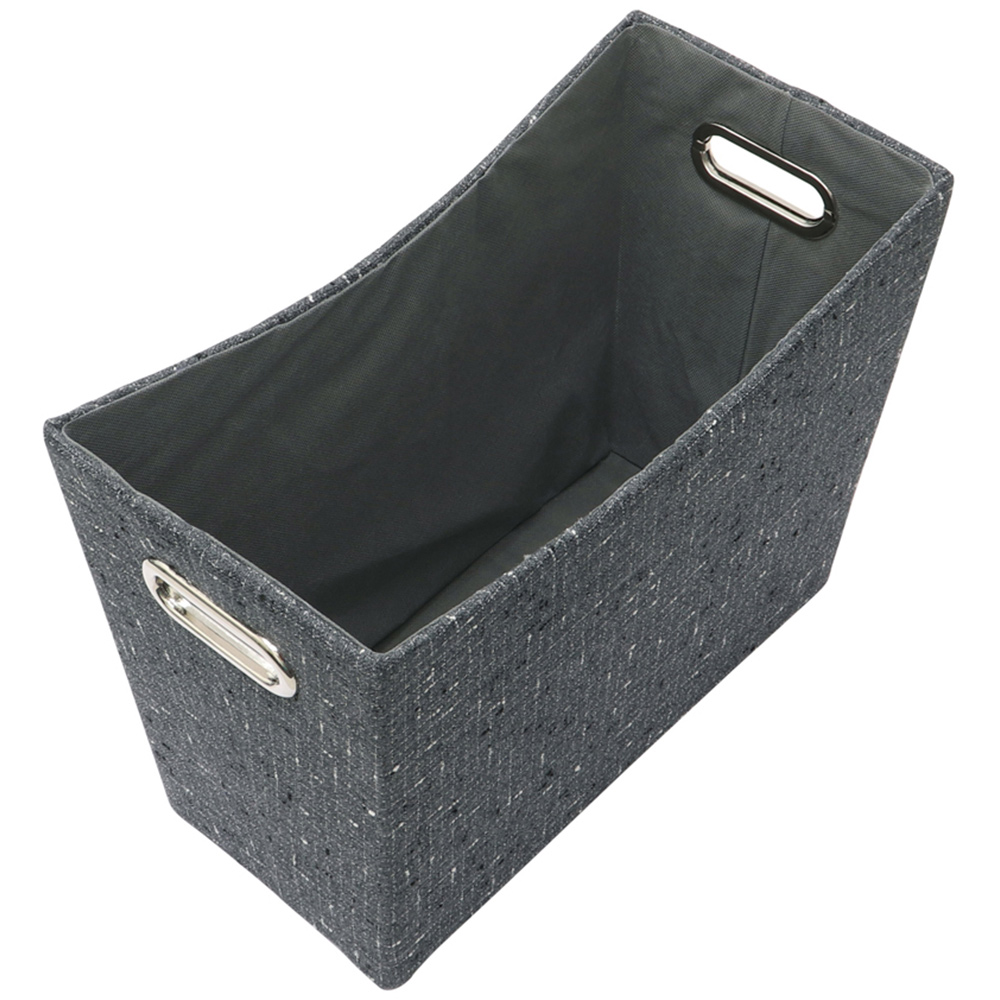Make a stylish and practical addition to your home with JVL Shadow Fabric Magazine Holder. With a charcoal grey colour palette – it links perfectly with the Scandinavian style interior trend. This tapered magazine holder is designed to fit with your household decoration. Designed to complement most interior décor – it is perfect for storing magazines, newspapers, books or even small garments such as scarves. With metal handles for the finishing touch – it is well suited to the hallway, the end of the sofa, the office and more. Specifications: Size: H:29 x W:40 x D:21cm approximately. Base W:35.5 x D:15.5cm approximately. Capacity:30l approximately.