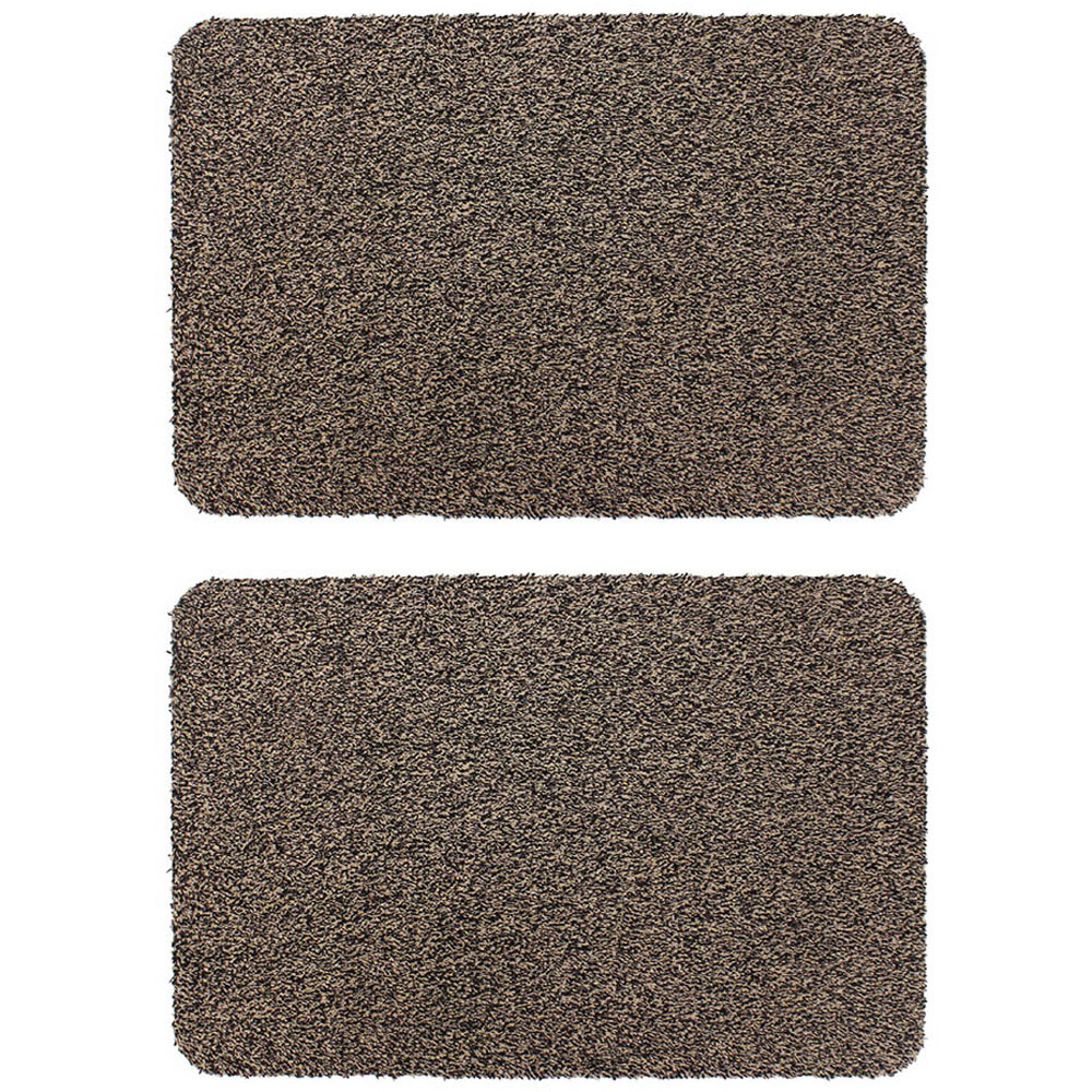 Say goodbye to dirt and moisture that sneaks in with shoes, boots, and paws with the JVL Tanami Brown Barrier Doormat, the ultimate solution to keep your home floors clean and dry. This high-quality mat creates a barrier from the outdoors and prevents dirt from getting in. Perfect for any entrance, kitchen, hallway, or any area of your home that requires extra protection. With its deep pile design, the mat removes excess dirt and moisture from soles, boots, and paws, while the fibres soak up moisture to keep floors dry. The latex backing ensures that the mat stays in place while wiping your feet. Plus, the two-tone fleck design hides dirt and keeps the product looking cleaner for longer. And when it starts to look dirty, simply toss it in the washing machine at 30°C for hassle-free cleaning. Invest in this mat to keep your floors spotless and your home looking its best. Size: 50 x 75cm. Pack of two.