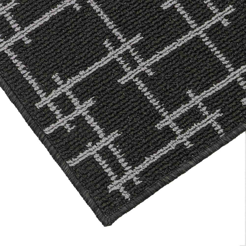 Restore your living space effortlessly with this JVL Vector Black Indoor Machine Washable Doormat. Features a criss-cross pattern in black and grey to suit any entrance, kitchen or hallway. The doormat has a latex backing to prevent movement while wiping shoes or feet. It is a functional and decorative enhancement designed to help prolong the life of all types of flooring from wood, tiles or carpet. It soaks up excess moisture to prevent slipping hazards, and the fibres trap dust and dirt, keeping floors cleaner for longer. When the mat gets dirty, machine wash it at 30 degrees, and it will look brand new. Suitable for indoor use. Size: 50 x 80cm approximately.