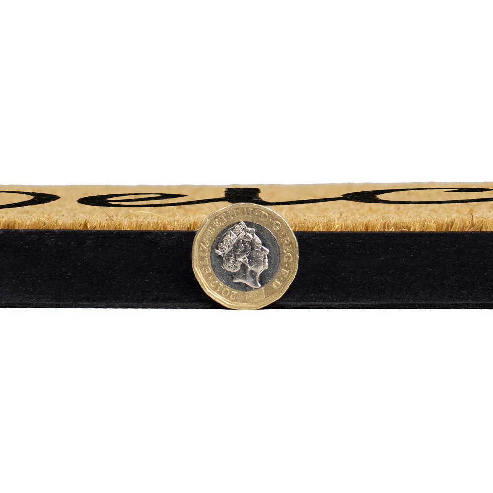 Greet your guests with this Welcome Granite Scraper Door Mat 40 x 70cm by JVL. These traditional-style doormats are made from 100% coir, which comes from natural coconut fibres, sat within a sturdy rubber frame for the perfect finishing touch. It features a 'Welcome' message to create a warm greeting for your guests. The coir offers fantastic scraping qualities for muddy shoes and boots and absorbs water well, meaning your floors stay cleaner for longer. It is suitable for all weather, all year round and used outdoors. The decorative detail greets your guests before they enter the home. Also, you can use this mat at the door, porch, greenhouse, shed, conservatory, or patio. It's robust, durable, easy to clean, and perfect for busy households.