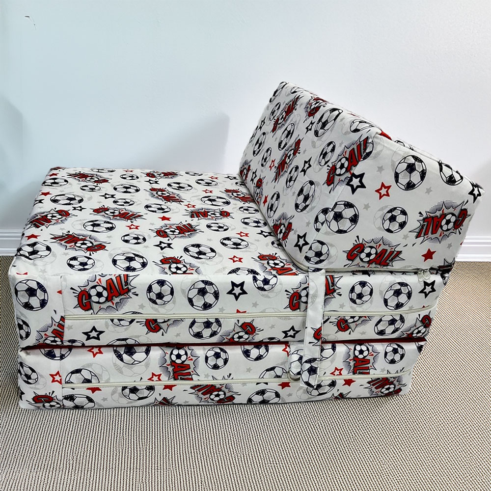 Kaikoo Single White Goal Print Foldable Chair Bed