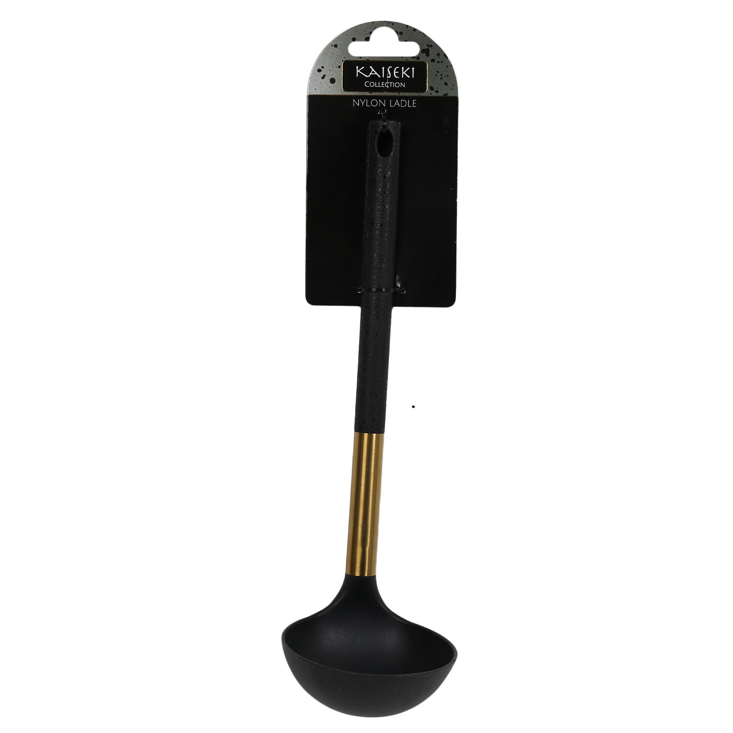 The Kaiseki Nylon Ladle is a stylish accessory for any kitchen. The ladle is perfect for serving all types of saucy dishes, such as soups and curries and is finished with a hole in the handle for simple storage. The ladle has an attractive golden accent for a modern feel and pairs perfectly with the Kaiseki collection for a fully coordinated kitchen.
