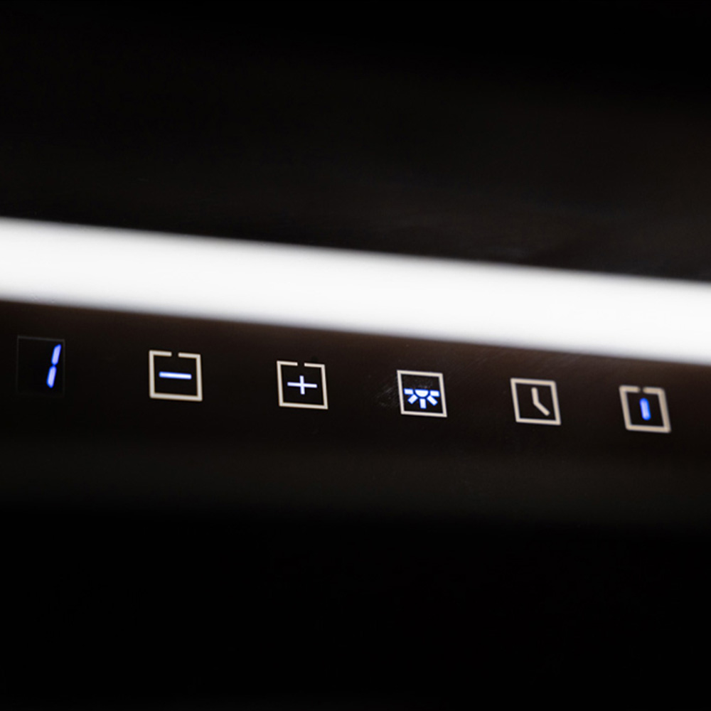 This 90cm wall-mounted cooker hood in sleek black glass adds a modern, high-tech touch to your kitchen. The front panel opens automatically at the touch of a button, revealing powerful extraction with three fan speeds and two LED lights. It’s simple to use, with full-touch controls and an optional timer. Easy to clean with a wipe-down glass finish and dishwasher-safe filters — it keeps the air fresh while looking the part.
