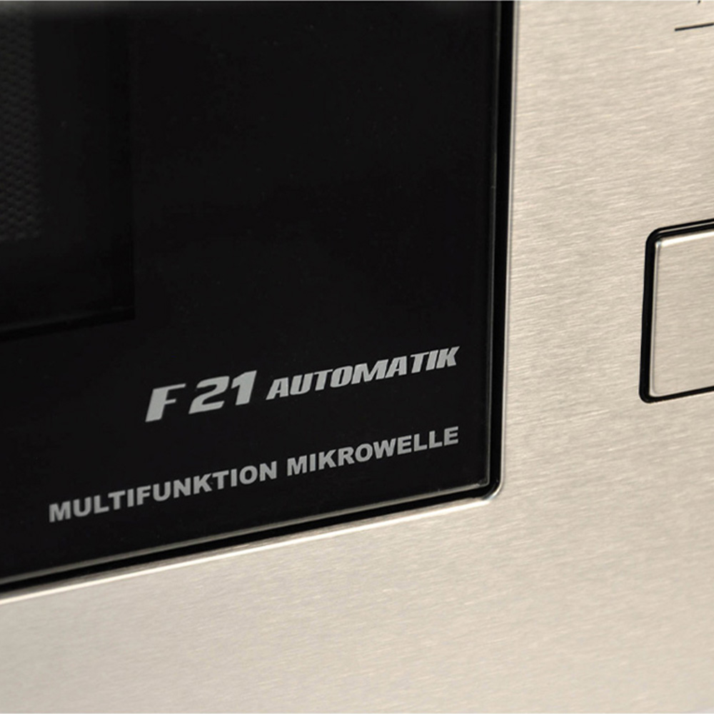 This built-in microwave in high-grade stainless steel is a stylish all-in-one appliance that does so much more than reheating leftovers. With 21 cooking modes, including a grill and fan-assisted hot air, it’s perfect for everything from crisping up pizza to baking a cake. You can save up to four custom cooking programs, while the defrost-by-weight feature takes the guesswork out of mealtimes. Modern, compact, and packed with power — a brilliant addition to any kitchen.