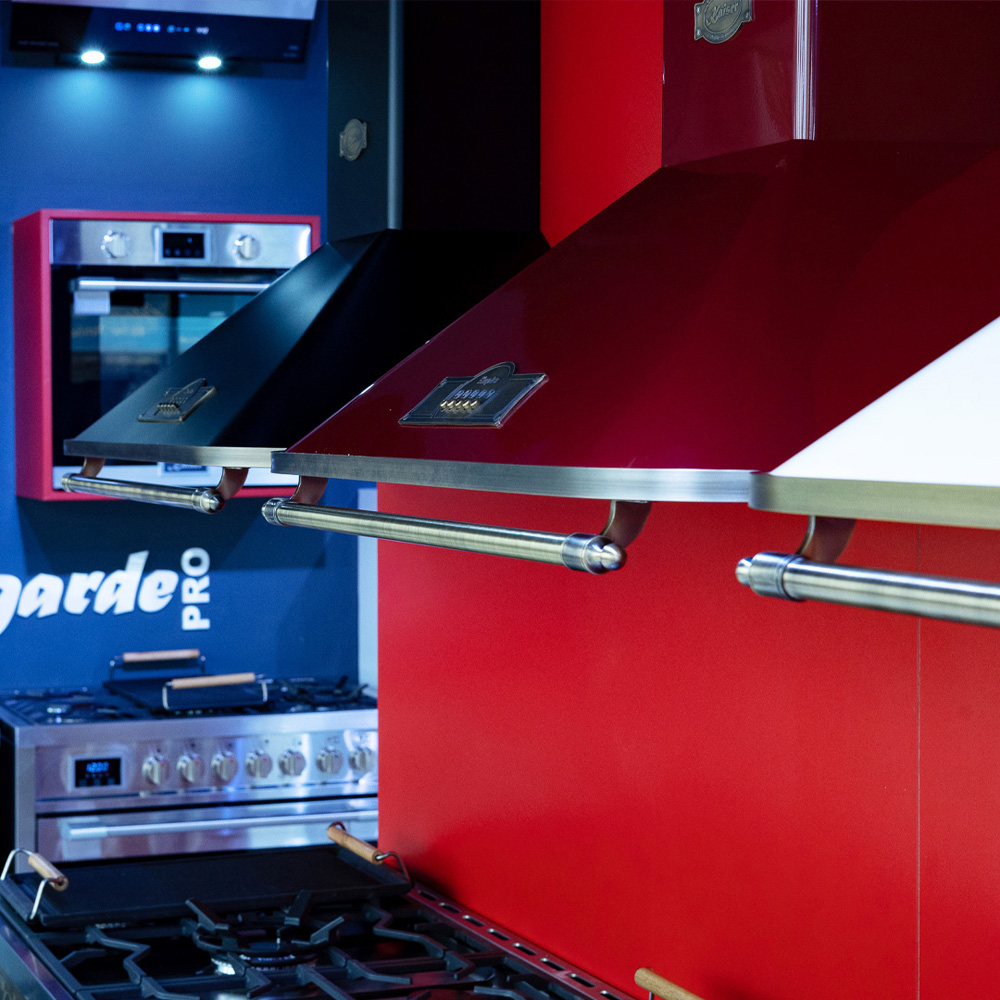 This traditional wall-mounted cooker hood in Bordeaux Red brings timeless charm to your kitchen, with elegant metallic detailing and a smart handle that’s great for hanging utensils or tea towels. It’s easy to use, thanks to the clear 5-button control panel and handy 3-speed settings. Two bright LED lamps help light up your hob, while you choose between external extraction or internal filtering depending on your setup. Simple, stylish, and designed to make cooking a little easier every day.