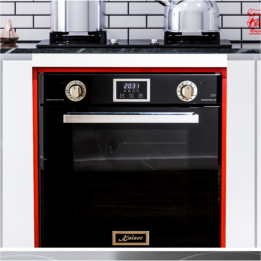 This 60cm built-in gas oven in black mirror glass adds a modern touch to your kitchen while delivering real cooking power. With a large 79L capacity, it includes a rotating rotisserie, a double infrared grill, and simple digital controls. One-handed ignition makes it easy to get started, and the self-cleaning enamel interior helps cut down your cleaning time. Designed for great results and everyday ease.