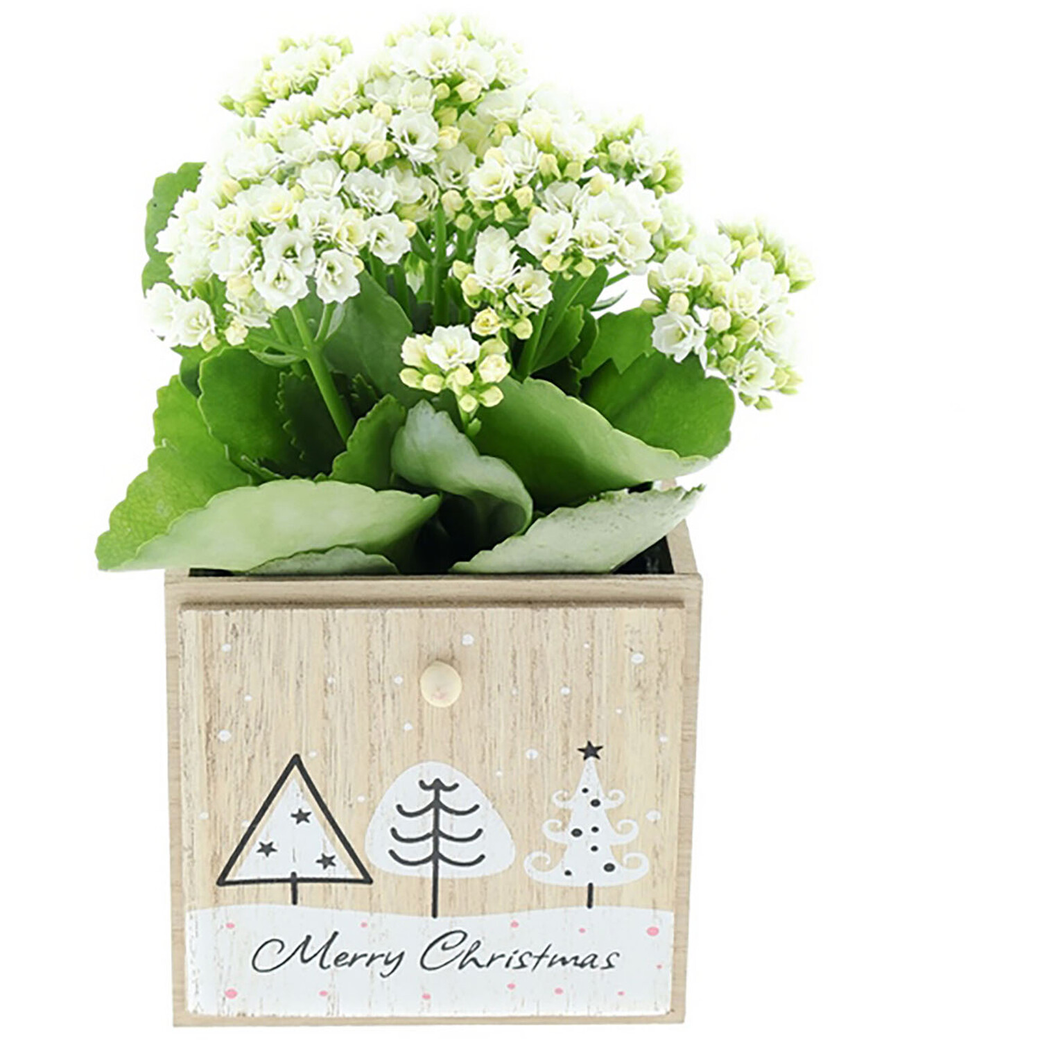 Add a festive touch to your space with the Kalanchoe in Wooden Pot 13cm. Available in an assortment of red or white hues, this Kalanchoe pot is perfect for brightening up your Christmas decor. It adds a touch of nature to your home throughout the holiday season and beyond. This charming plant makes an ideal seasonal accent or thoughtful gift.