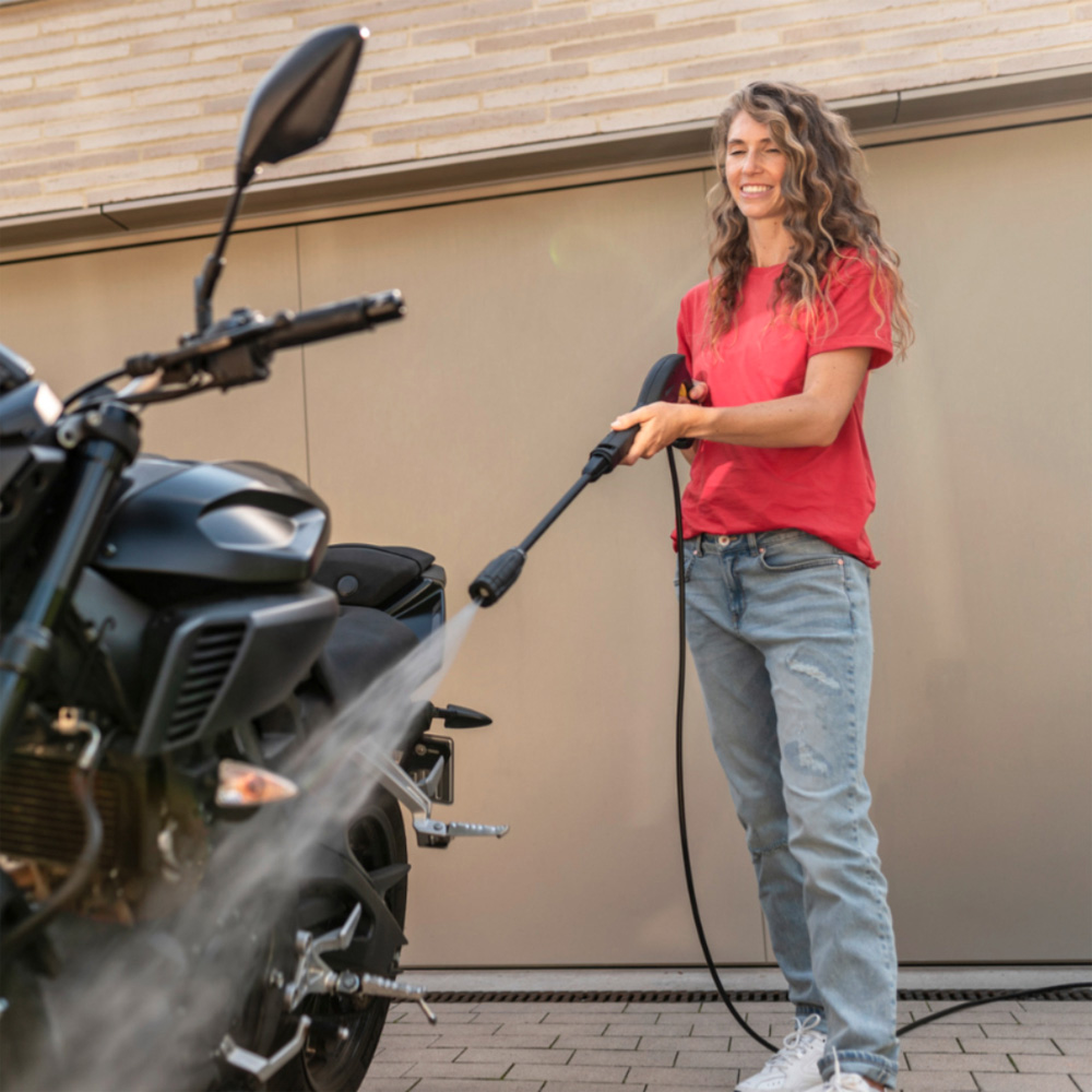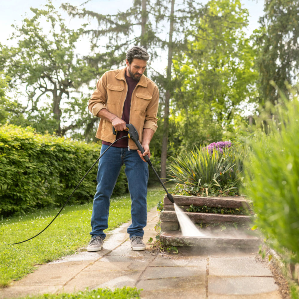 Make your cleaning routine effortless and efficient with this Karcher K3 Classic Pressure Washer. This washer includes a vario lance and dirt blaster, which are ideal for cleaning delicate surfaces such as cars or harder surfaces like stone and brickwork. Plus, it also includes T150 patio cleaner and 500ml patio and deck detergent, making cleaning larger areas easier and faster. The integrated detergent tank allows you to easily apply detergent directly through the machine, and with a quick connect hose system, it is easier to connect the 6m high-pressure hose to both the machine and trigger gun. Features 120 Bar (1740psi) maximum pressure with a 1600W universal motor. An onboard storage is included for the trigger gun, hose, and lances to be stored neatly on the machine.