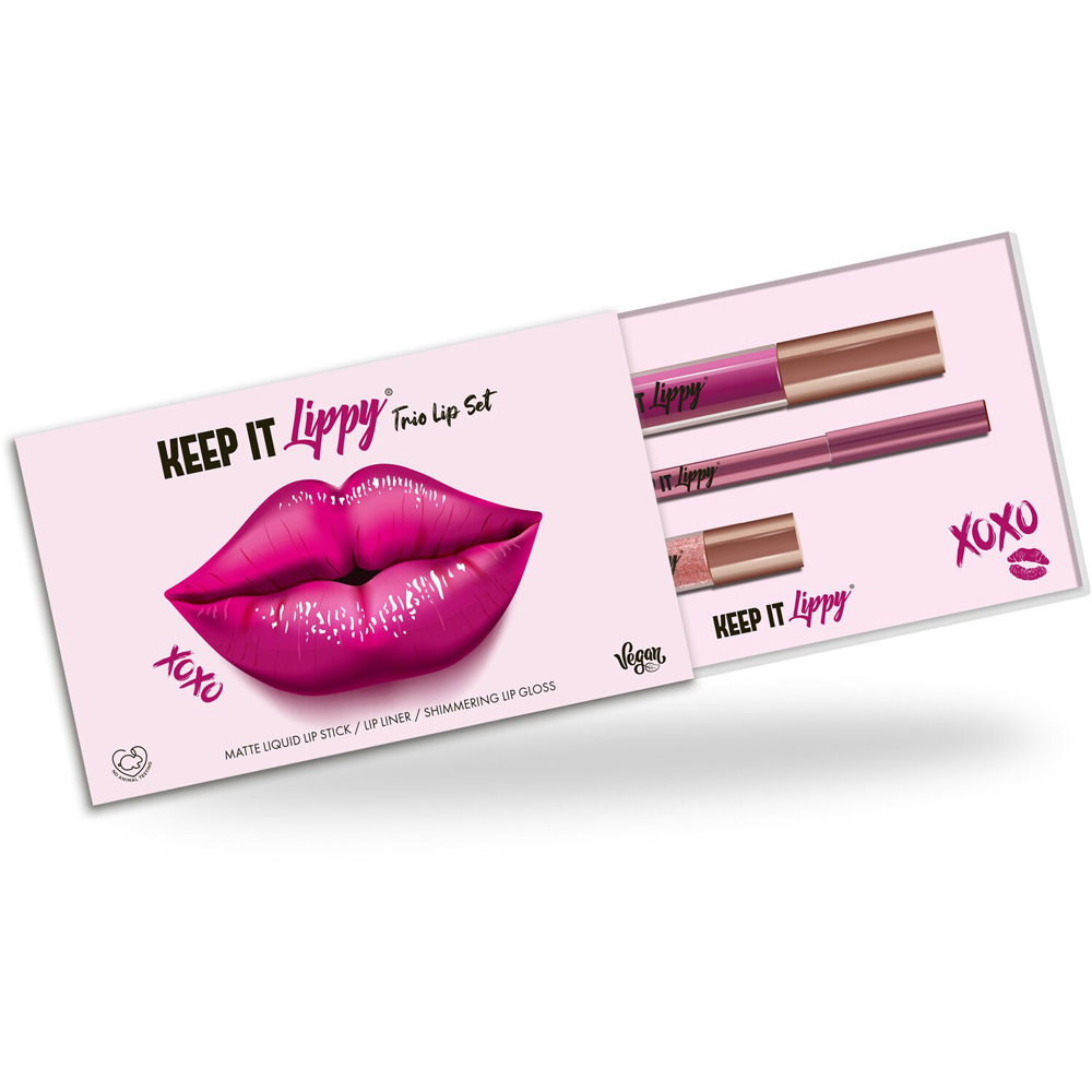 The Keep it Lippy Trio Lip Set is the perfect gift collection for a beauty lover. The lip set includes a matt liquid lipstick, lip liner, and shimmering lip gloss in stunning coordinating shades for the perfect lip finish. Each item included in the gift set is made with a vegan-friendly formula and is the ideal addition to your makeup collection.