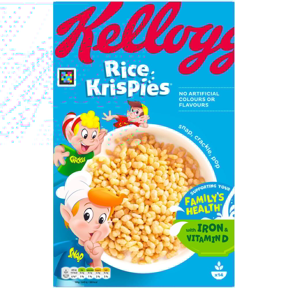 Supporting Your Family's Health* Iron Supporting Brain Function With Iron* B9, B2 Folic Acid & Riboflavin Help Reduce Tiredness & Fatigue* Vit D 50% Daily Vitamin D Needs To Support Bones* Added Goodness* *Source Of Vitamins D, B1, B2, B3, B6, B9 & B12 And Iron. Iron Contributes To Normal Cognitive Function. Vitamin D Contributes To The Maintenance Of Normal Bones. Folic Acid (B9) And Riboflavin (B2) Contribute To The Reduction Of Tiredness And Fatigue.. With Iron & Vitamin D. Snap, Crackle, Pop. Natural Grains. Rolled & Toasted. No Artificial Colours Or Flavours. Suitable For Vegetarians. Halal - Hfa Approved. Kosher - Manchester Beth Din, Kosher Parev. Kellogg's.
