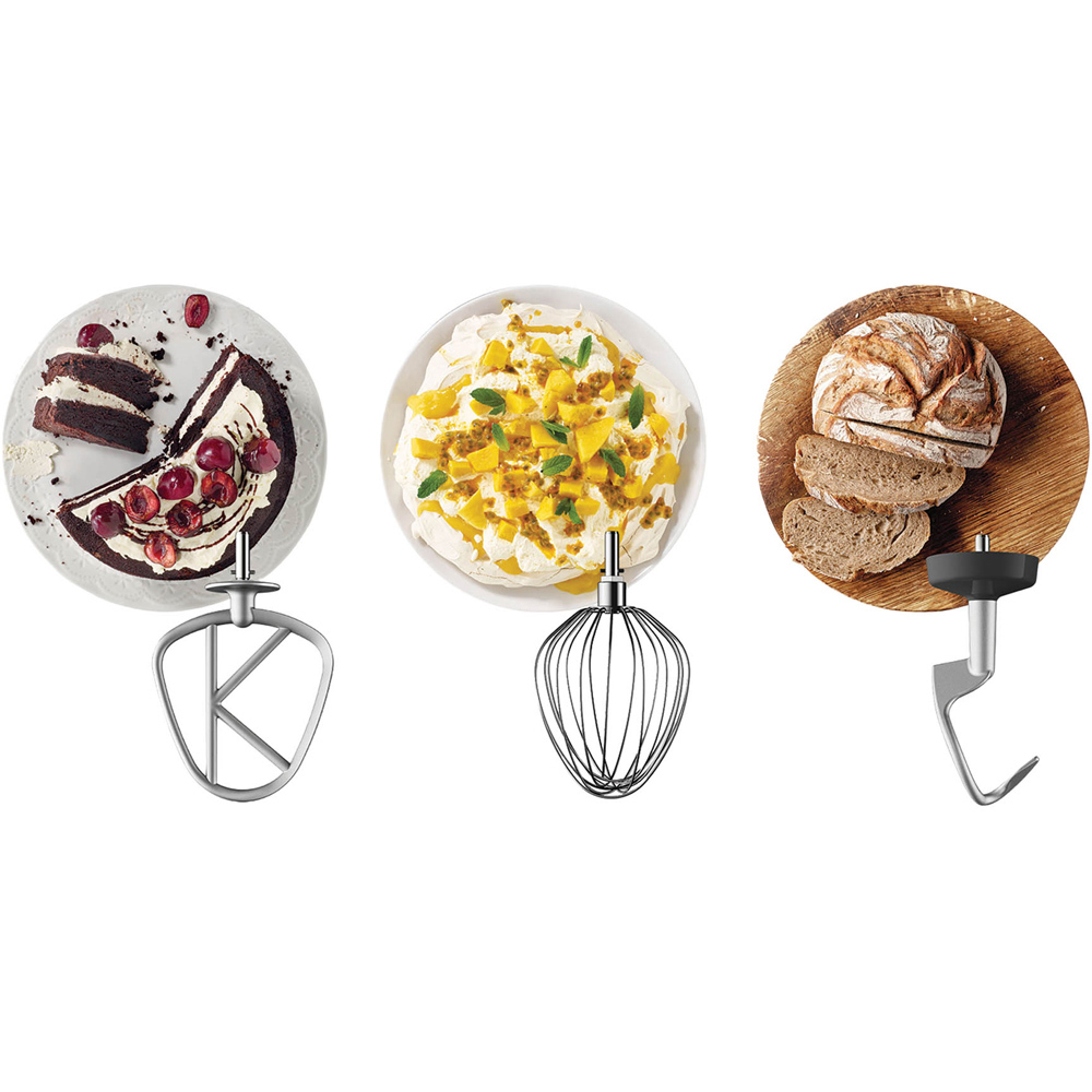 Prepare your favourite dish with the Kenwood KVL4100S Silver Chef XL 6.7L Stand Mixer. It will be your trusted baking companion while you whisk, knead or whip to create the most delicious recipe. It features a 1200W motor for larger batches and heavier dough with an extra-large 6.7L bowl for larger quantities. The bowl is ideal for mixing up to 16 egg whites and 4.5kg of fruit cake mix approximately. It includes more than 25 optional attachments for blending, grating, dicing and making pasta according to your preference. This product comes with a 5-year guarantee.